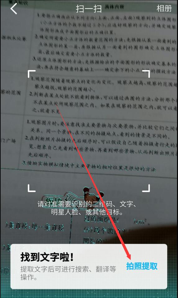 第三步:对准需要扫描的文字扫描,确认扫到后,点击“拍照提取”