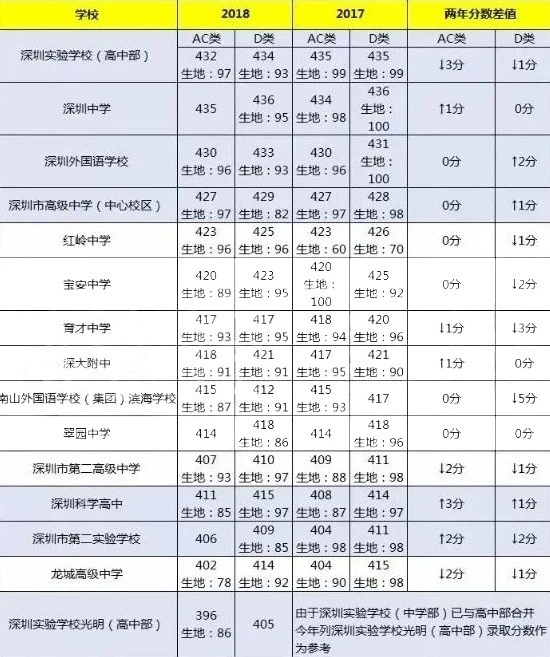 3、在这一梯队中,深中、深实验和深外的分数线常年保持在430分以上,而深高级这两年分数线在430分以下。不得不说,深高级与“三大”还是有一定差距的,属于四大中的第二档。