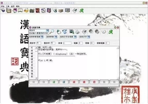 此软件相当于一本汉语言的大百科全书。书中包括一本汉语字典、一本通用词典、一本成语词典、一本文言文词典、一本谜语大全等。