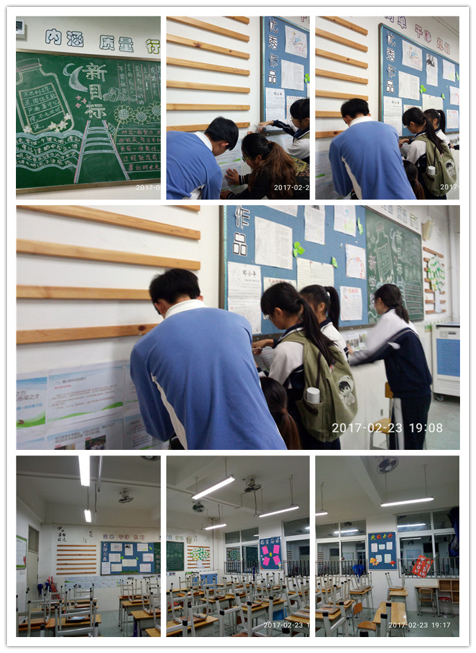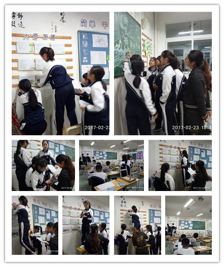 8、班级布置启动,班级宣传委员林森钰、廖嘉欢、李文雅、吕晶、何文静和叶颖、、李欣桐、刘金福、邓章平、王永慧等同学一起努力为班级增色添彩。班级廖鹏威妈妈也帮忙在布置着班级,点赞,点赞!