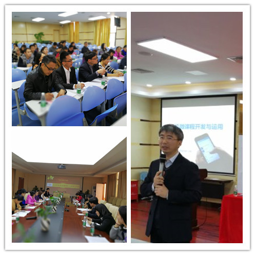 仪式结束后,雷斌老师作了手机微课程的开发与运用的专题讲座,全体成员和平外部分老师聆听了雷老师的精彩讲座。