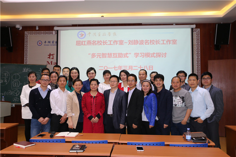 3月28日下午三点,屈红燕名校长工作室与刘静波名校长工作室联袂在平湖实验学校映心楼一楼会议室召开了“多元智慧互助式”学习模式专题研讨会。两个名校长工作室成员及龙岗区教师进修学校干部培训中心负责人秦华校长带领的龙岗区教育系统第七期青干班成员参加了专题研讨会。此次研讨会由秦校长主持。