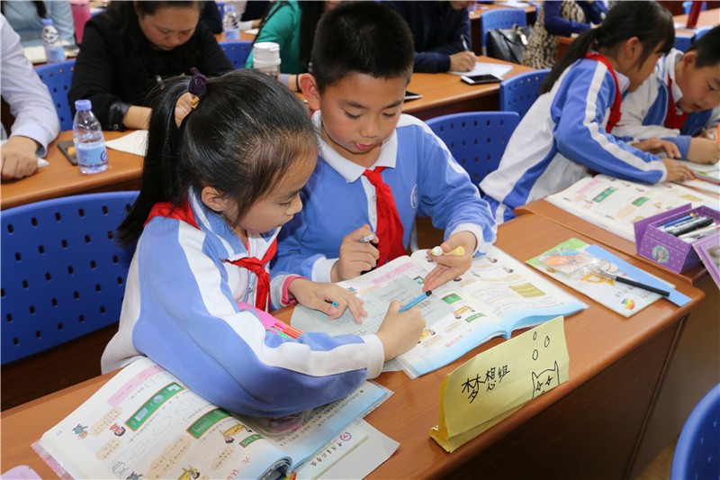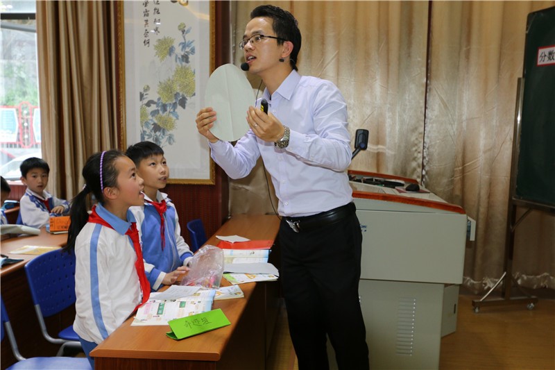 研讨会前,屈红燕名校长工作室的邬科老师带领他三年级的孩子们一起给大家呈现了一堂精彩的展示课《分一分认识分数》,邬科老师在课堂上充分运用“多元智慧互助式”学习模式,开展了丰富多彩的教学活动,课堂上孩子们在邬老师富有激情和充满活力的言语鼓励下,两人互助式小组合作开展得非常热烈,学习效率大大提高,都纷纷发言回答老师和同学提出的问题,并大胆地向老师和同学表达自己的学习观点,孩子们的精彩回答让听课老师们不由自主的竖起大拇指,情不自禁地微笑赞赏。