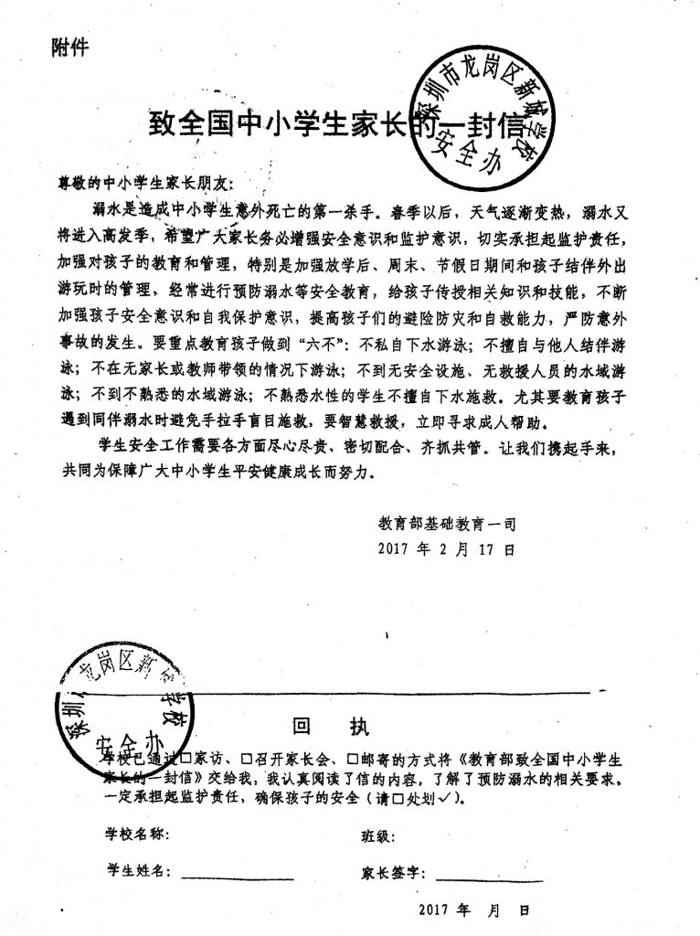 为了方便,纸质文档不再让小孩带回家签名,请各位家长在后面跟帖回复就好。