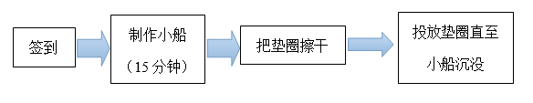 3、个人比赛结束后将垫圈用纸巾擦干,将纸船和其他纸屑带走。