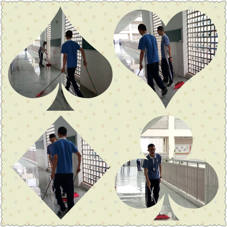 贺峰、薛鑫桐、黄冰冰 早读前主动清扫走廊积水