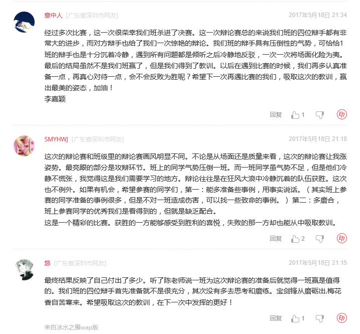2、班级参加年级辩论赛决赛及赛后学生反思