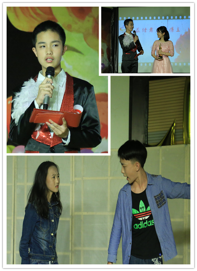 3、班级学生在学校戏剧节开幕式上主持和主演小品