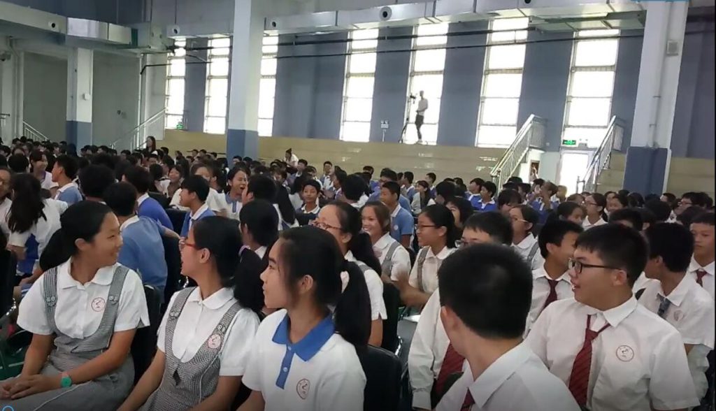 我们班是唯一一个上去吟诵的班级,但表现的跟想象中还是有太大差距了。台下老师对我们打着手势,让我们大点声。但声音还是没唱出来,很小声。吟诵效果实在是对不起这几天辛苦为我们排练的老师们。