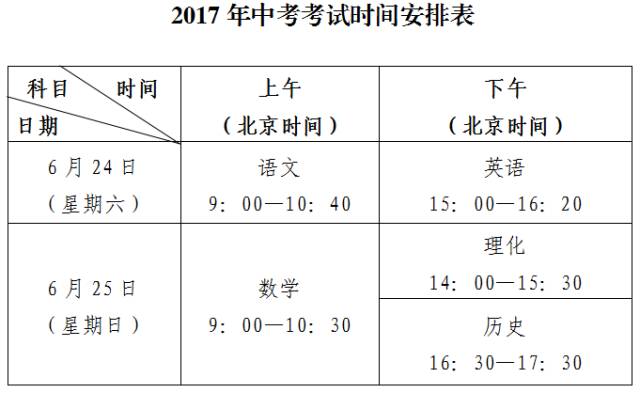 深圳市2017年中考将于6月24日(周六)至25日(周日)举行,