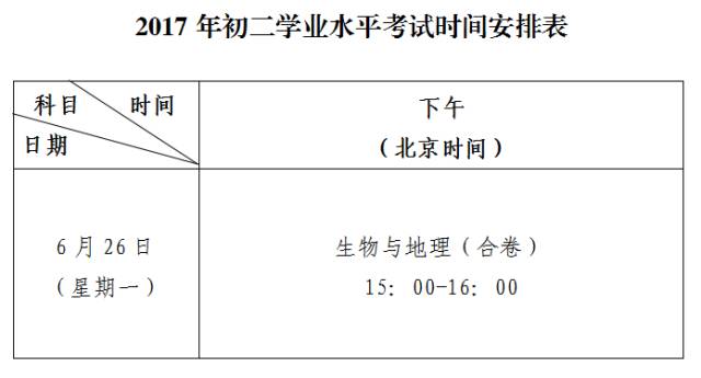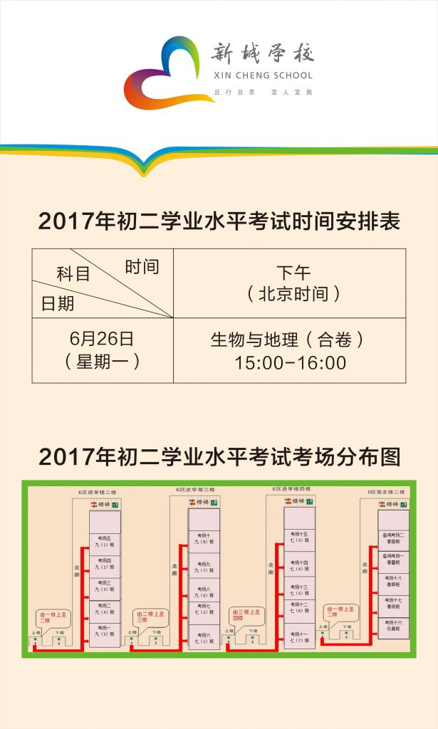 初二学业水平考试将于6月26日(周一)举行。