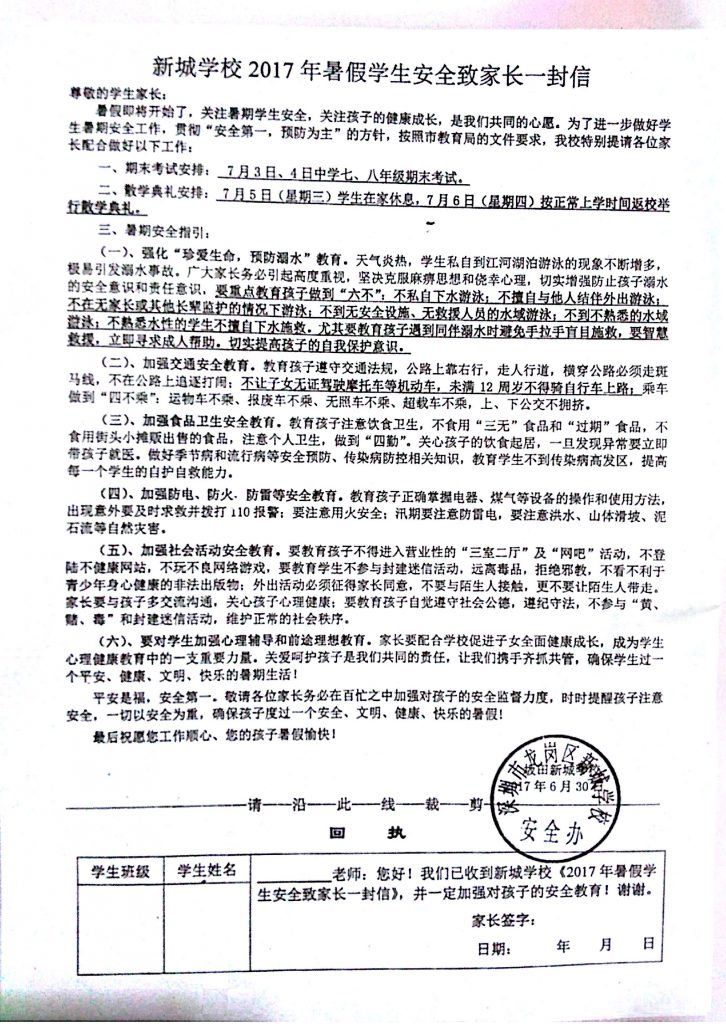 1、“XXX学生家长已知晓暑假放假安相关事项。”