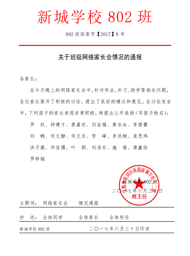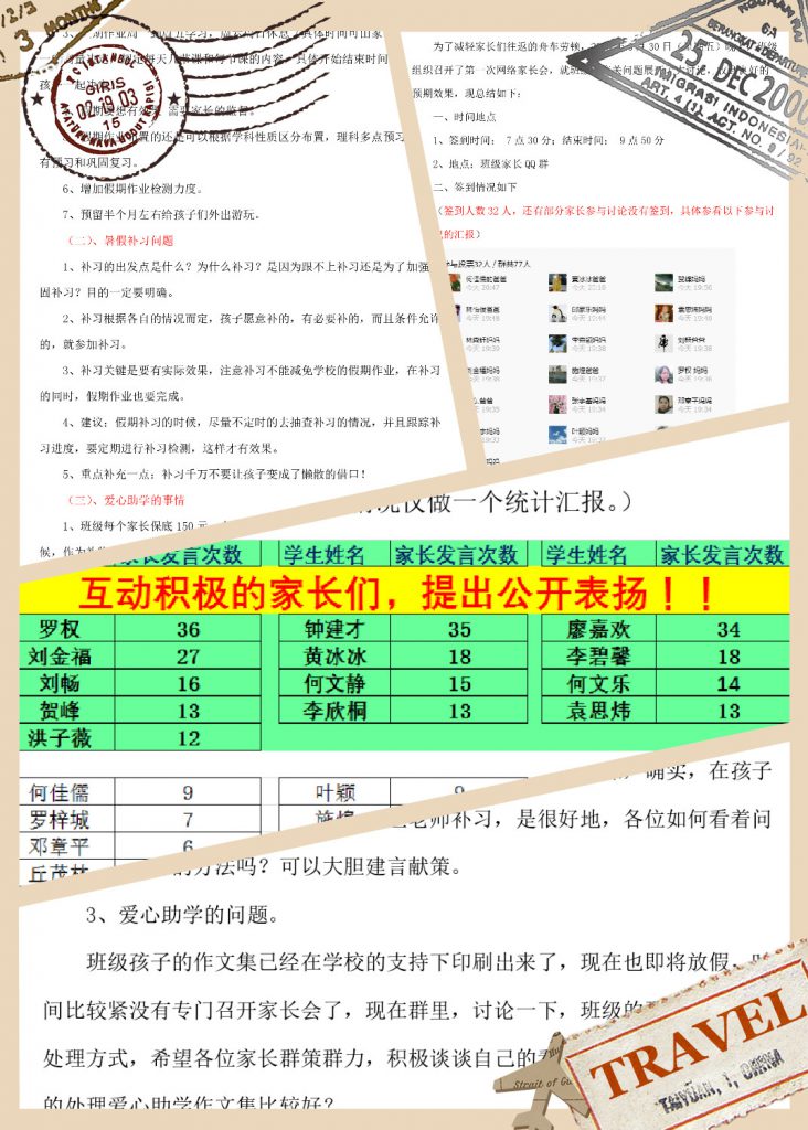 2、周五晚上,班级组织开展了网络家长会,会上家长们就假期作业、辅导、爱心助学等问题出谋划策、踊跃发言,积极讨论