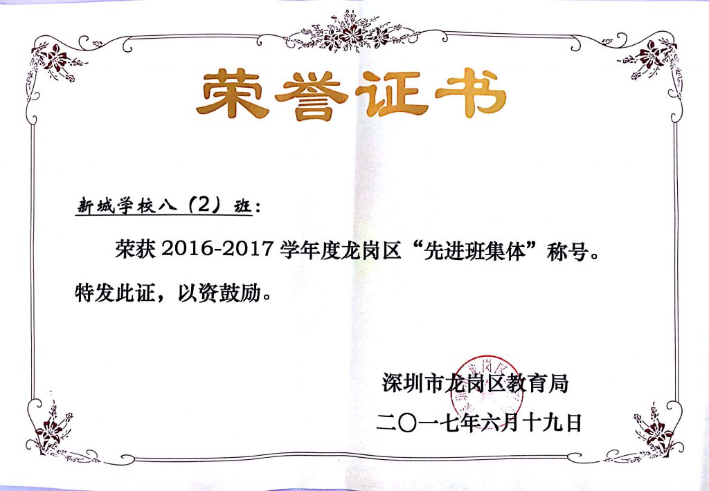 先插播一条喜讯,班级被评为了龙岗区“先进班集体”光荣称号!!