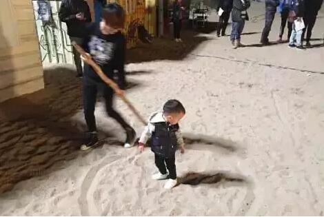 拍摄电影期间,吴京还把小宝贝带到了片场,但是又怕儿子在片场乱走,于是给他画了一个圆圈,立下了一个“小规矩”——“吴所谓小朋友的第一个夜班!不许跑出圆圈!”活脱脱严父风范啊,宝贝的内心也是崩溃的!