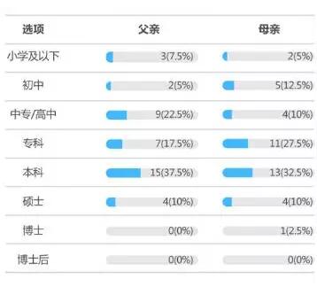 父母亲学历中本科及专科占多数,硕士学历显著提升