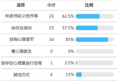 62.5%的“学霸”在出现负面情绪时会选择找老师和家长倾诉,而新疆文科最高分考生赵寒雨说,她更愿意通过自我调节或找好友倾诉来减压。
