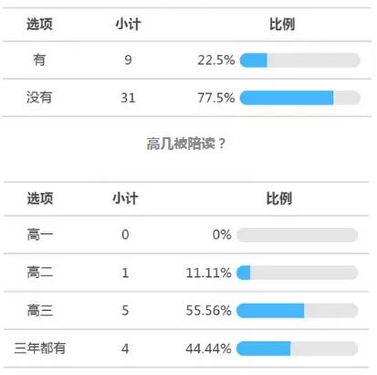 近八成“学霸”没有家长陪读经历,仅9人有被陪读的经历,占二成左右。