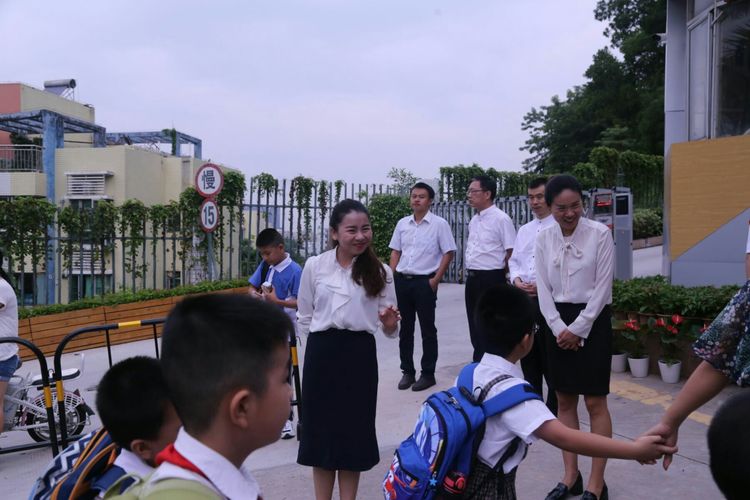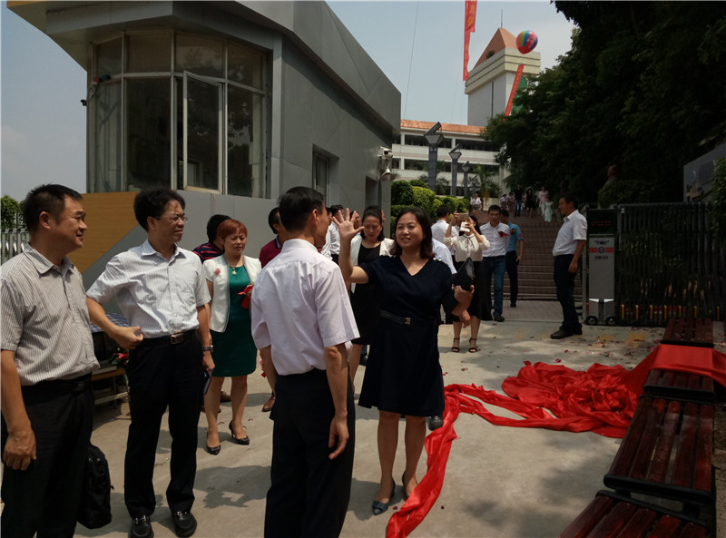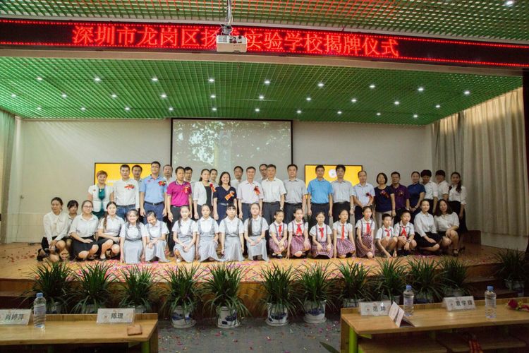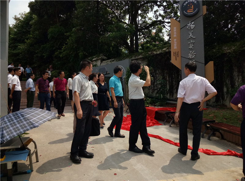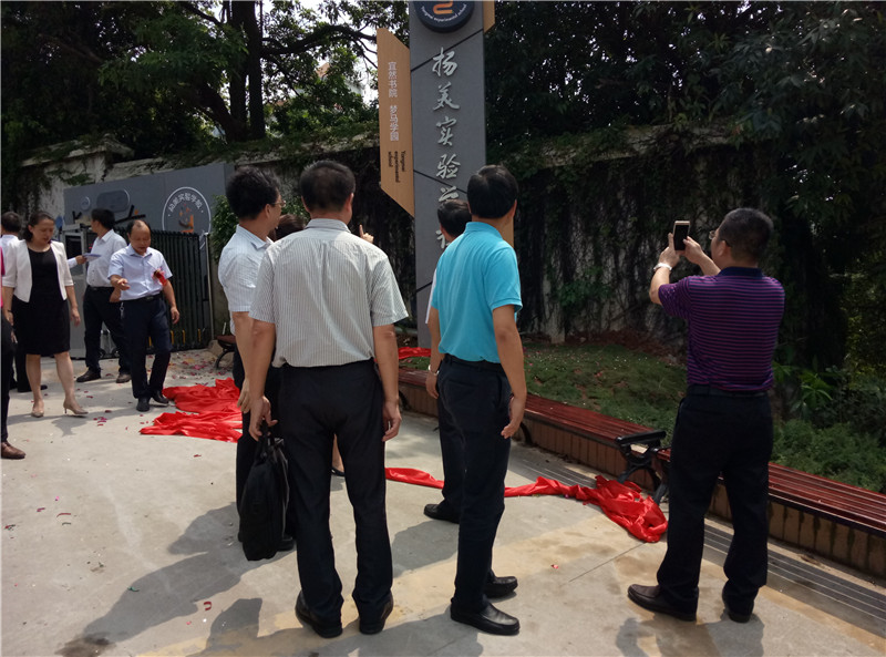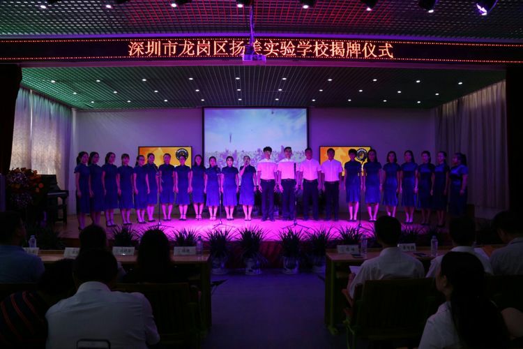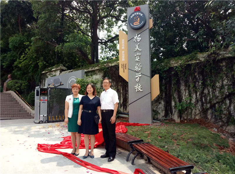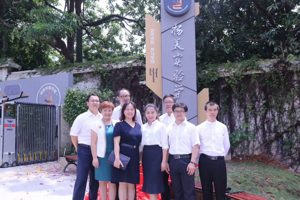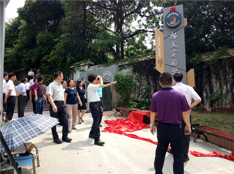 上午10:00,扬美实验学校揭牌仪式在学校会议厅举行,深圳市委教育工委范坤副书记、区教育督导室袁学峰主任、坂田街道党工委肖婷萍副书记、坂田集团张东海董事长、坂田集团张海兵副书记、坂田教办陈启良主任、杨美工作站吴锐华站长等嘉宾与陈理校长一起,以启动揭牌按钮远程遥控的方式,为矗立在校门前的扬美实验学校牌柱揭开红绸,标志着学校新篇章的开启。