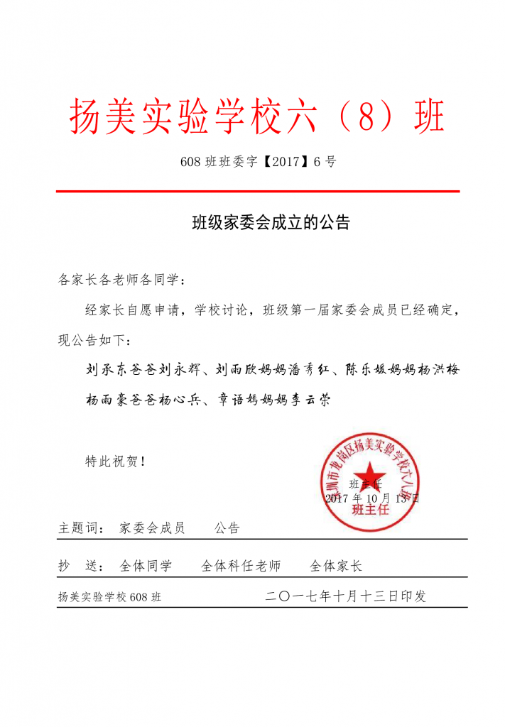 扬美实验学校608班第一届家长委员会成立公告2017年10月13日 22:00:57数字化教学研究 数字化教学研究管理员关注1535文章0粉丝 扬美2017级评论2,4912阅读模式班级第一届家长委员会经过自愿申请、讨论交流,已经成立,现公示如下: 热烈祝贺!感谢各位积极申请家委会的家长们,班级有你们的热心付出和积极参与,一定会有不一样的未来!希望各位家长以后鼎力支持他们为班级服务的工作!! 2 登录收藏 https://www.ky125.com/2017/10/13/6842/ 复制链接 复制链接 我的微信微信号已复制遇见数学-微信公众号善不由外来兮,名不可以虚作。做有情怀的教育。