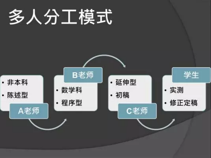 C老师:处理延伸型问题,这个阶段,初稿就可以出来了。最后是由学生的实际使用来做测试,但,学生会给一个严厉的回馈:如果学生觉得难则降低难度,如果学生觉得容易就增加难度。