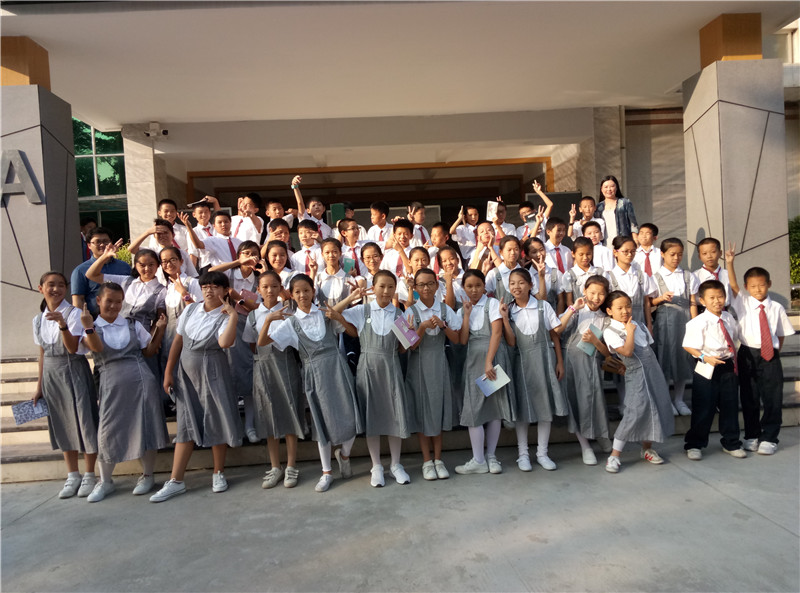 然后,我们便坐着大巴车回到了扬美实验学校。回到学校后,李老师给我们拍了几张照片,同学们“感慨”说:“哎,我们的学校太小了,还没人家那中学大。”