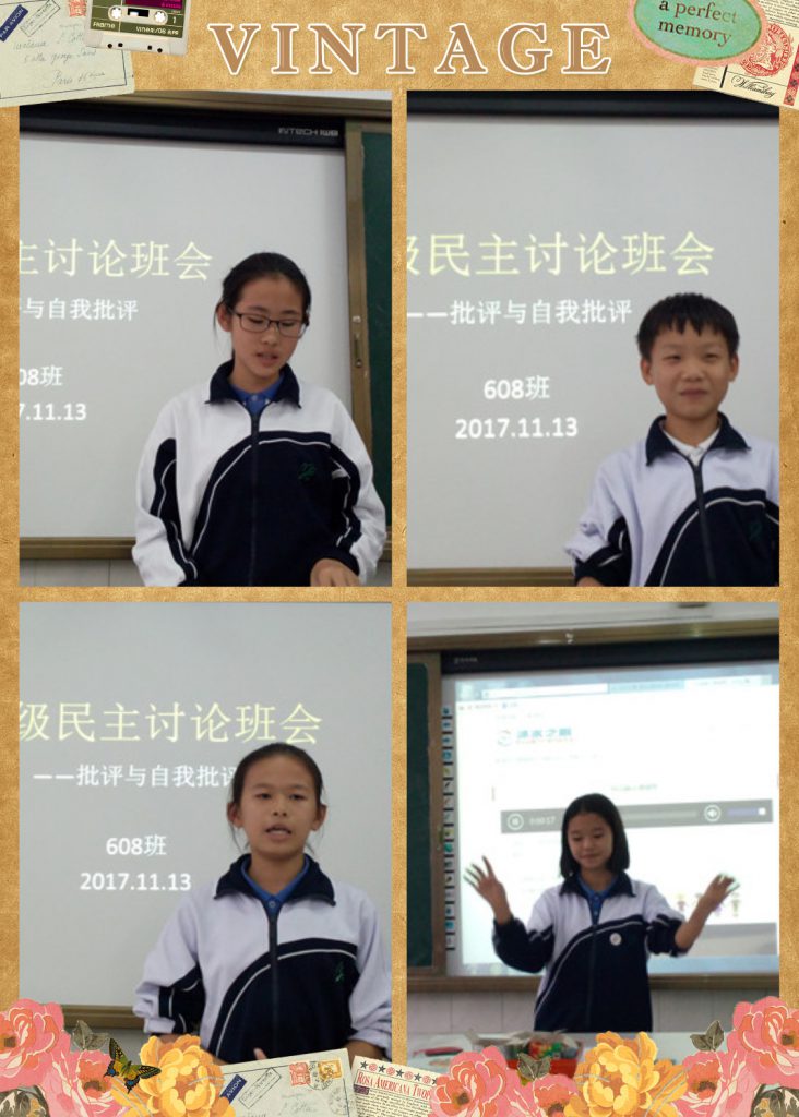 11月14日,下午活动课时间,扬美实验学校608班(梦之翼),开展了班级第一次批评与自我批评民主生活会。
