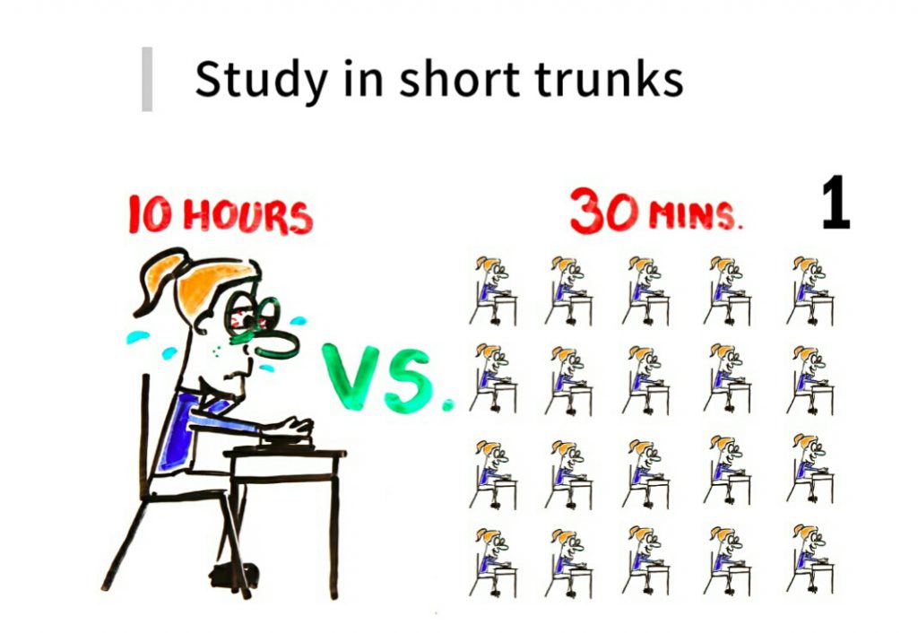 First step, research shows that study sessions are most effective in small short chunks, instead of cramming in a ten hour study session, it’s much more effective to spread it out into twenty thirty-minutes sessions over a few weeks.