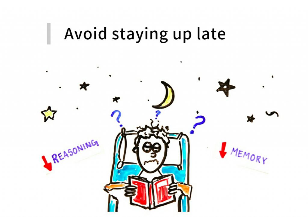 熬夜学习可能是一种惯例,但其实这直接导致了成绩不佳。长时间学习会对之后4天的记忆及推理能力产生坏的影响。