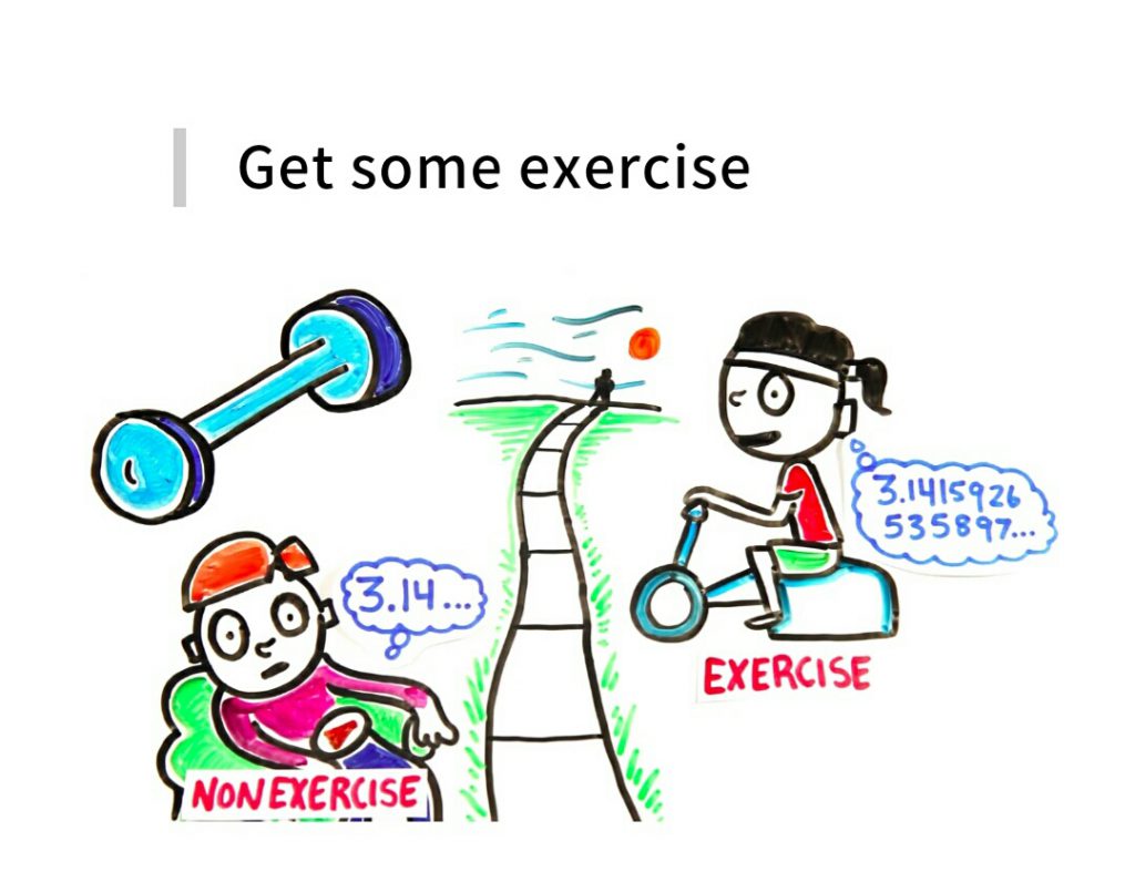 Can’t focus? Get some exercise. A study found that those who worked out for 15 minutes on a stationery bike, and then complete a memory task, completed the task significantly faster than the group that didn’t exercise. Even a quick walk around the block can clear up your mind.
