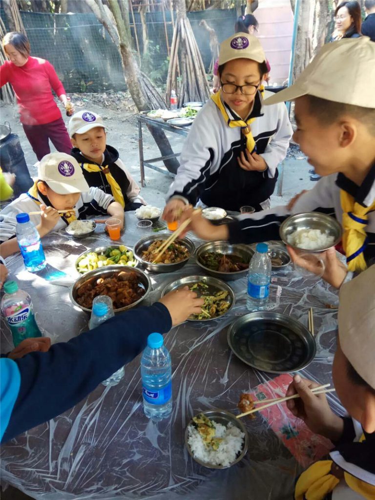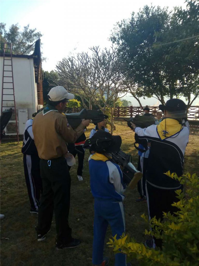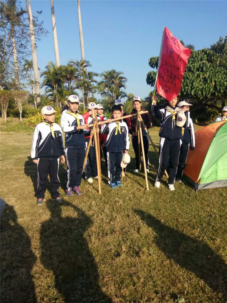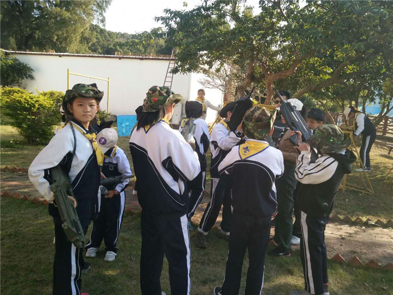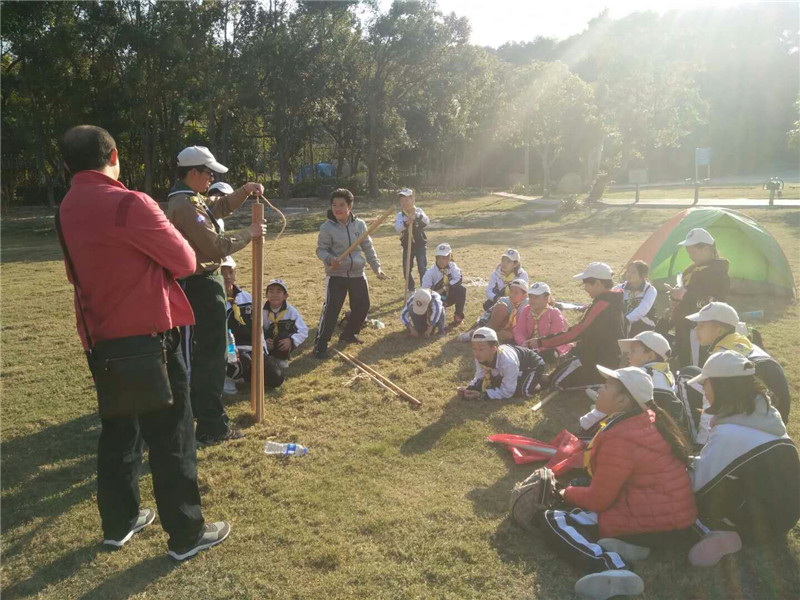 在童子军体验活动中,孩子们先后体验了“童军礼仪,诺言,规律、特训军营训练、军营趣味体验、安全急救课堂、野外生存挑战、斥候(侦查)训练、CS 丛林穿越”等课程,让每位孩子们能够在自然环境中关心他人,在克服困难中建立自信,在团队竞赛中与人合作,在学习中积累能力。