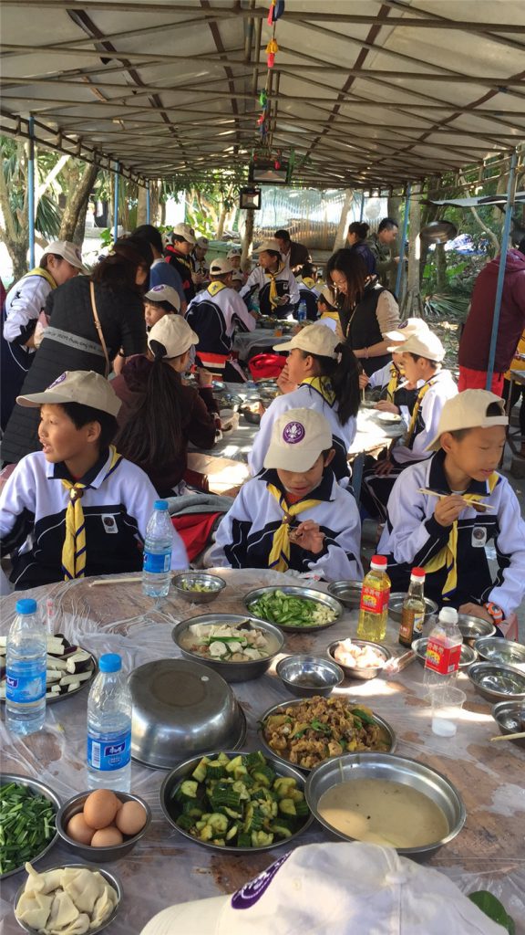 活动分两个板块,第一个板块为孩子们体验童子军活动,第二个板块为亲子野炊活动。