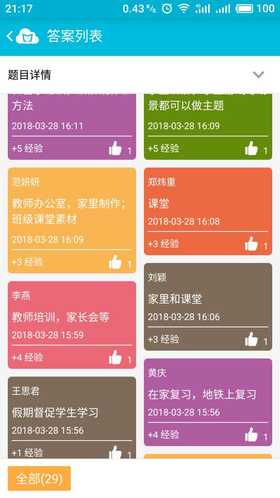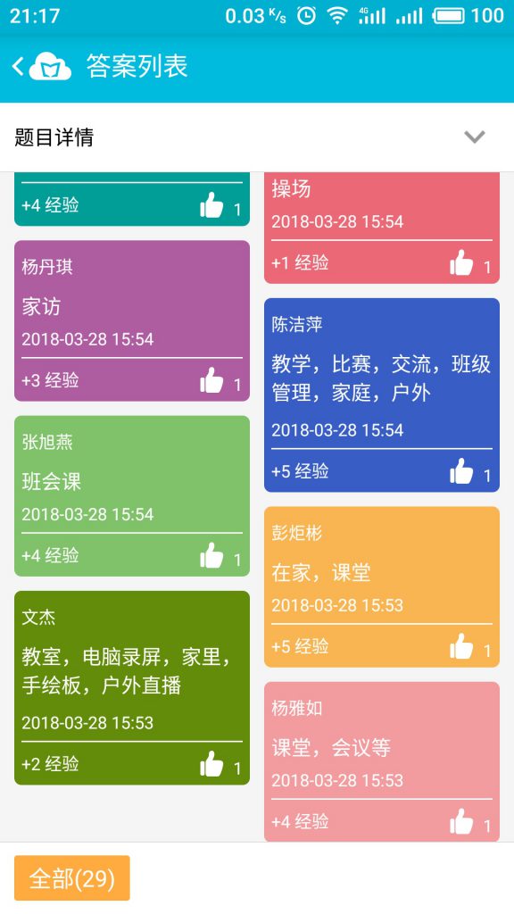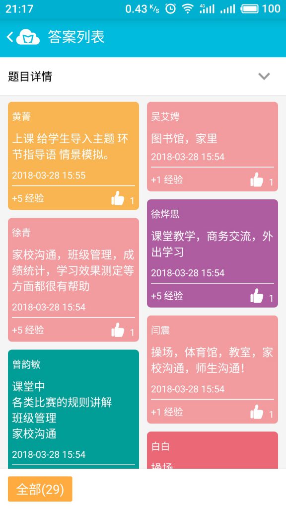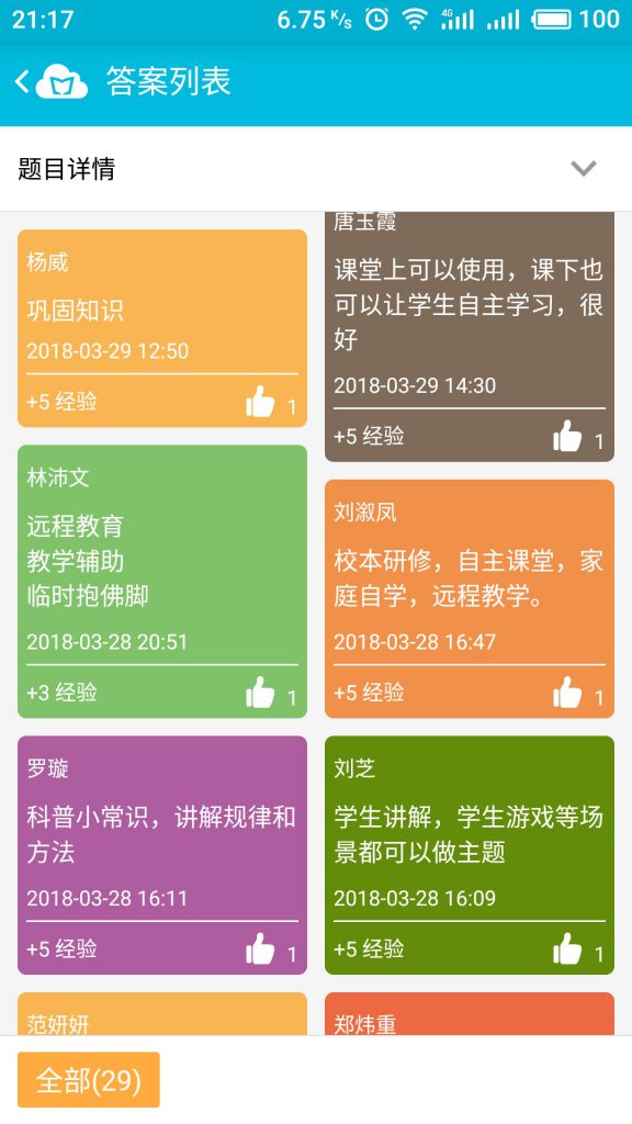 在分享交流中,李老师模拟课堂,通过一个又一个场景,带领老师们体验了云班课的各种功能和应用,让老师们对云班课有了更深入的理解和掌握。老师们全程积极参加互动,体验各种功能。