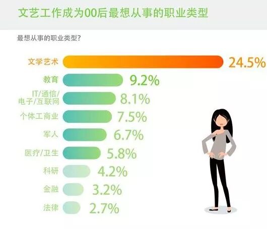 00后更具“文艺范”,希望能成为演员、作家、设计师等文艺工作者。
