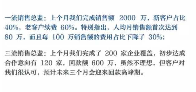 其实,这个三流销售总监的工作总结可以写成一句话,“本月工作只完成预定目标的60%”,其他都不需要说了。