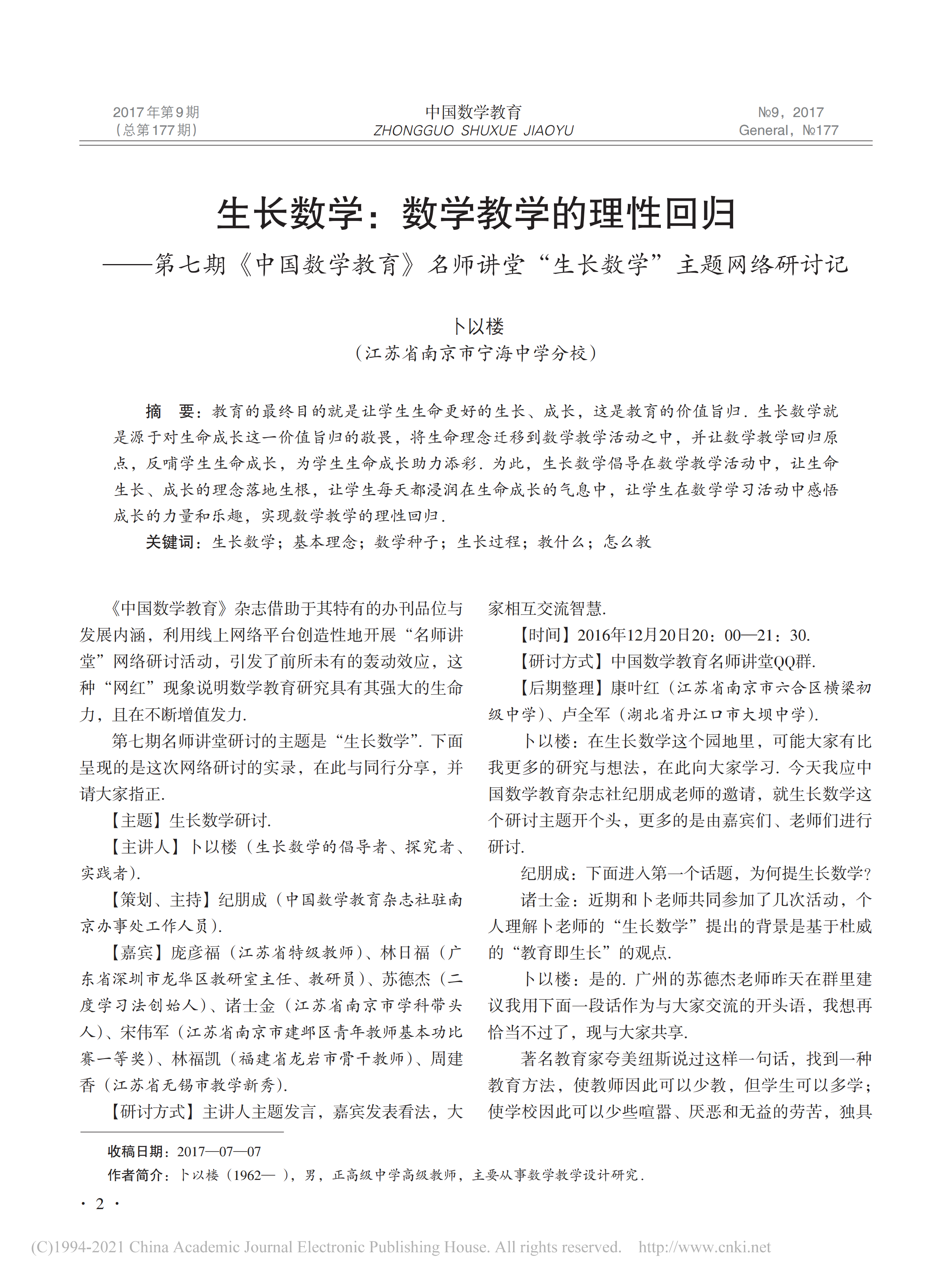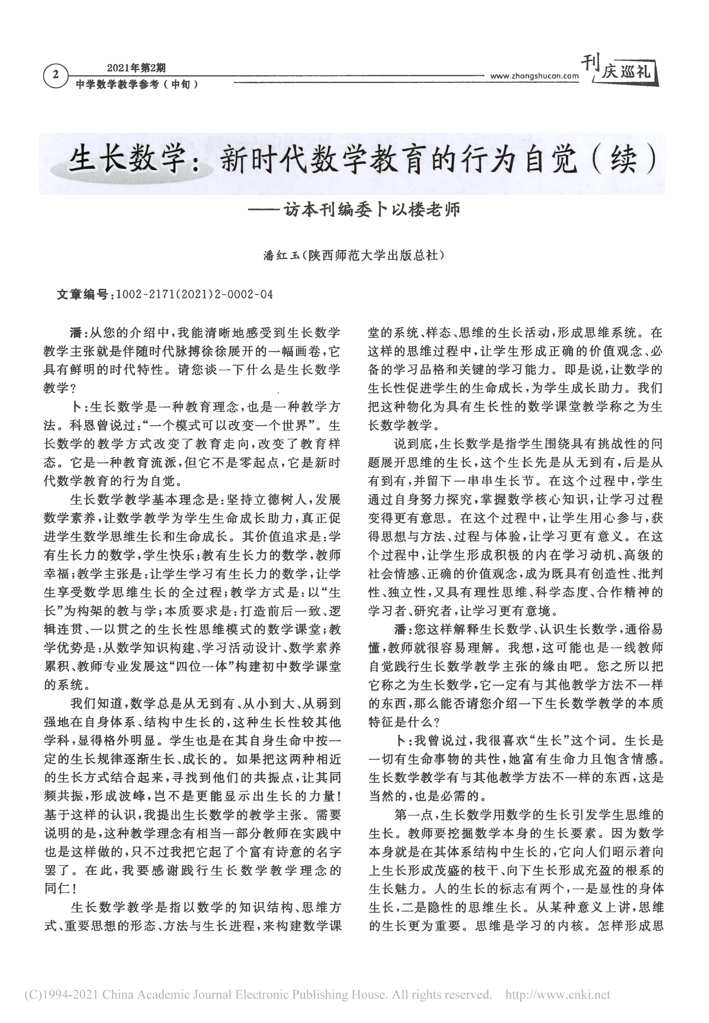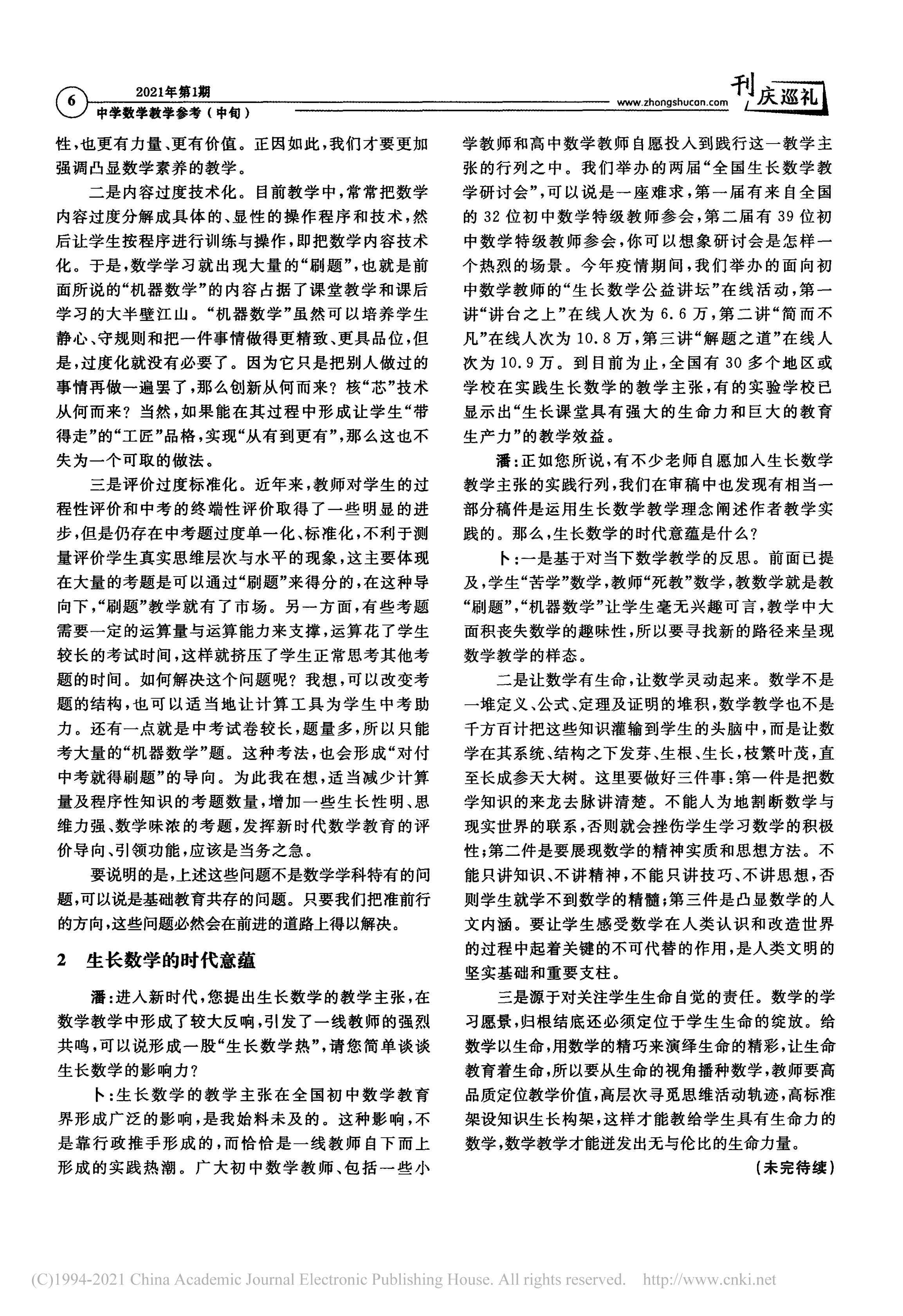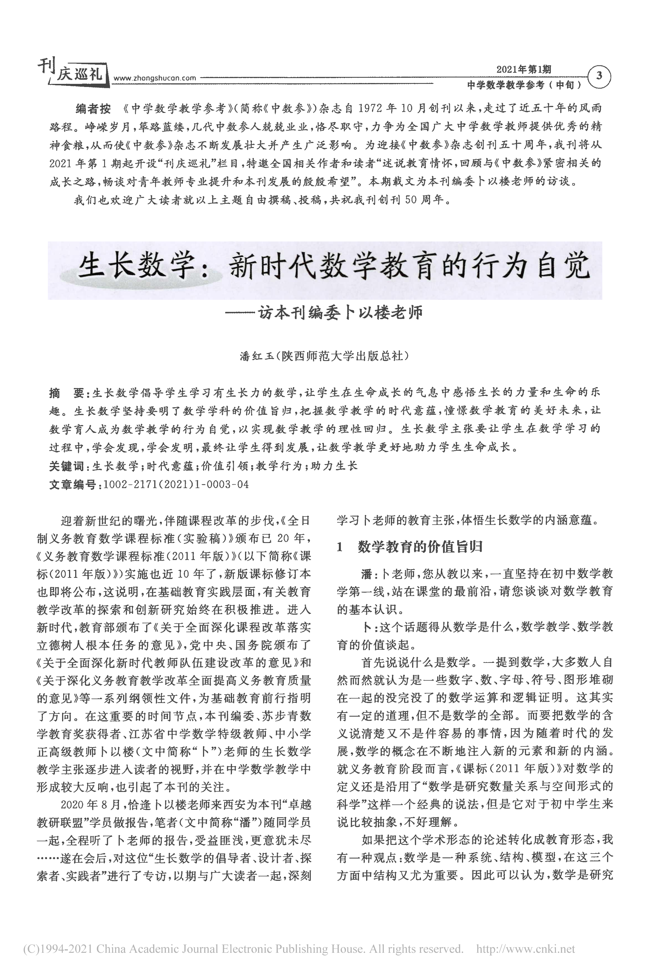 1.生长数学_新时代数学教育的行为自觉_访本刊编委卜以楼老师_潘红玉