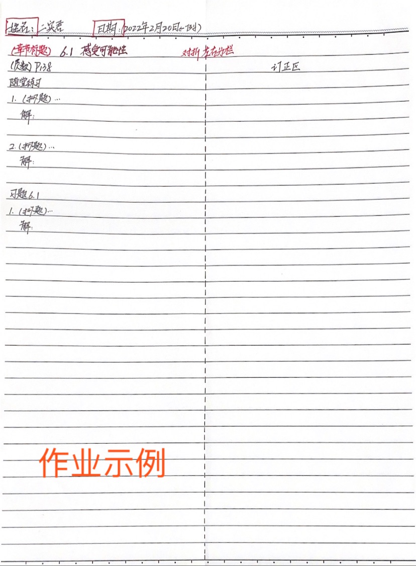③作业本上需写上:姓名、日期、章节名称、页码、抄题;具体可见如下图1: