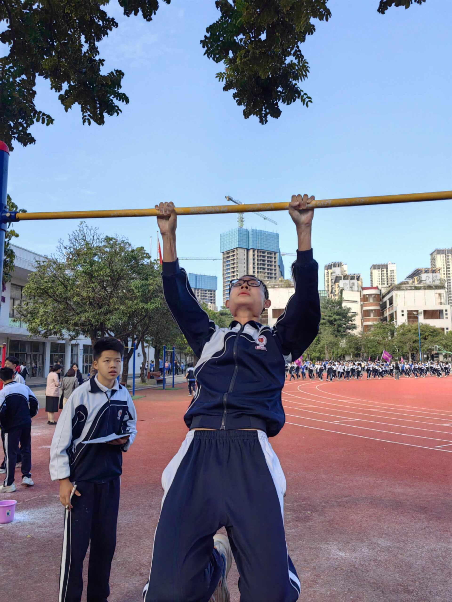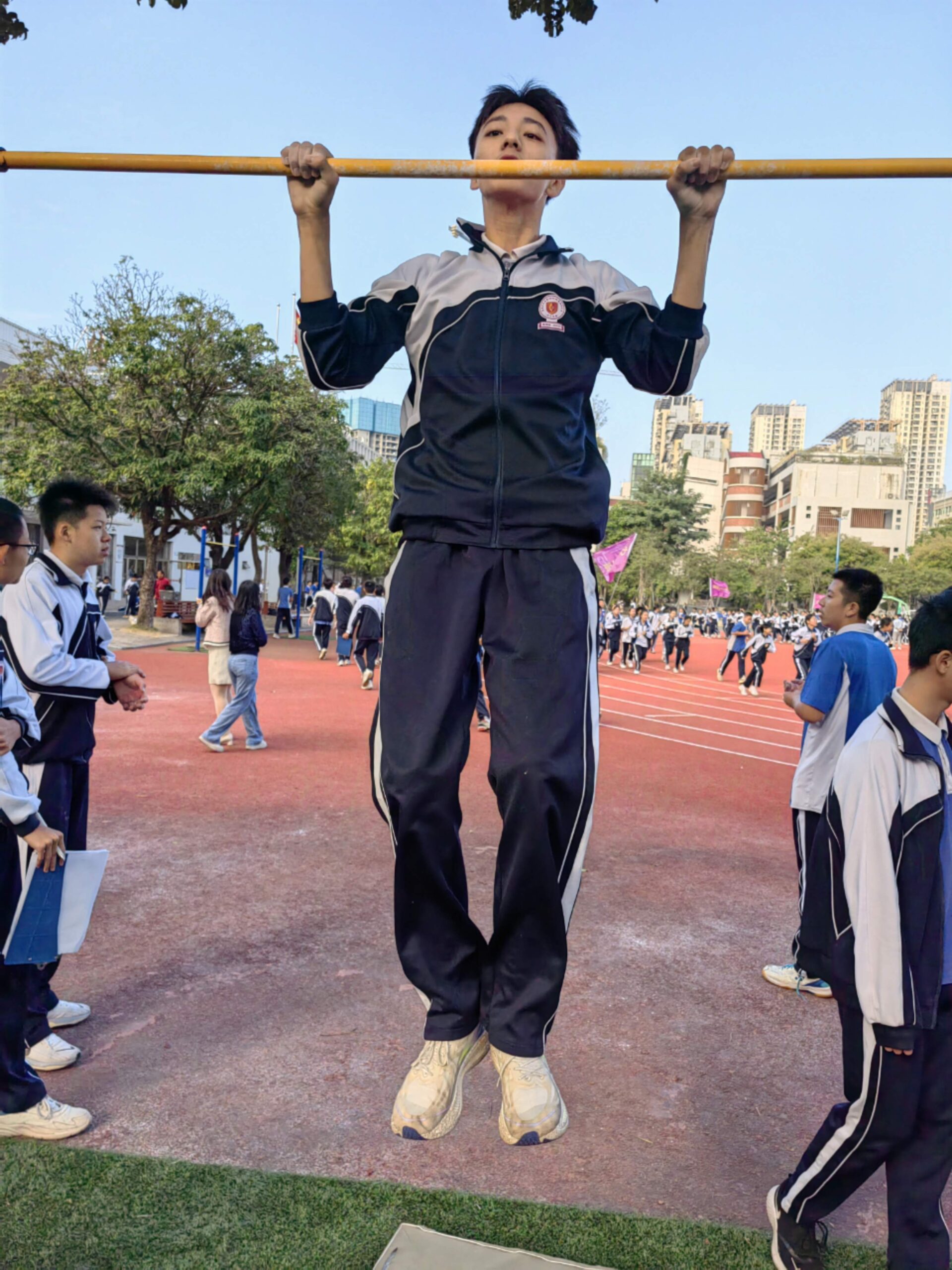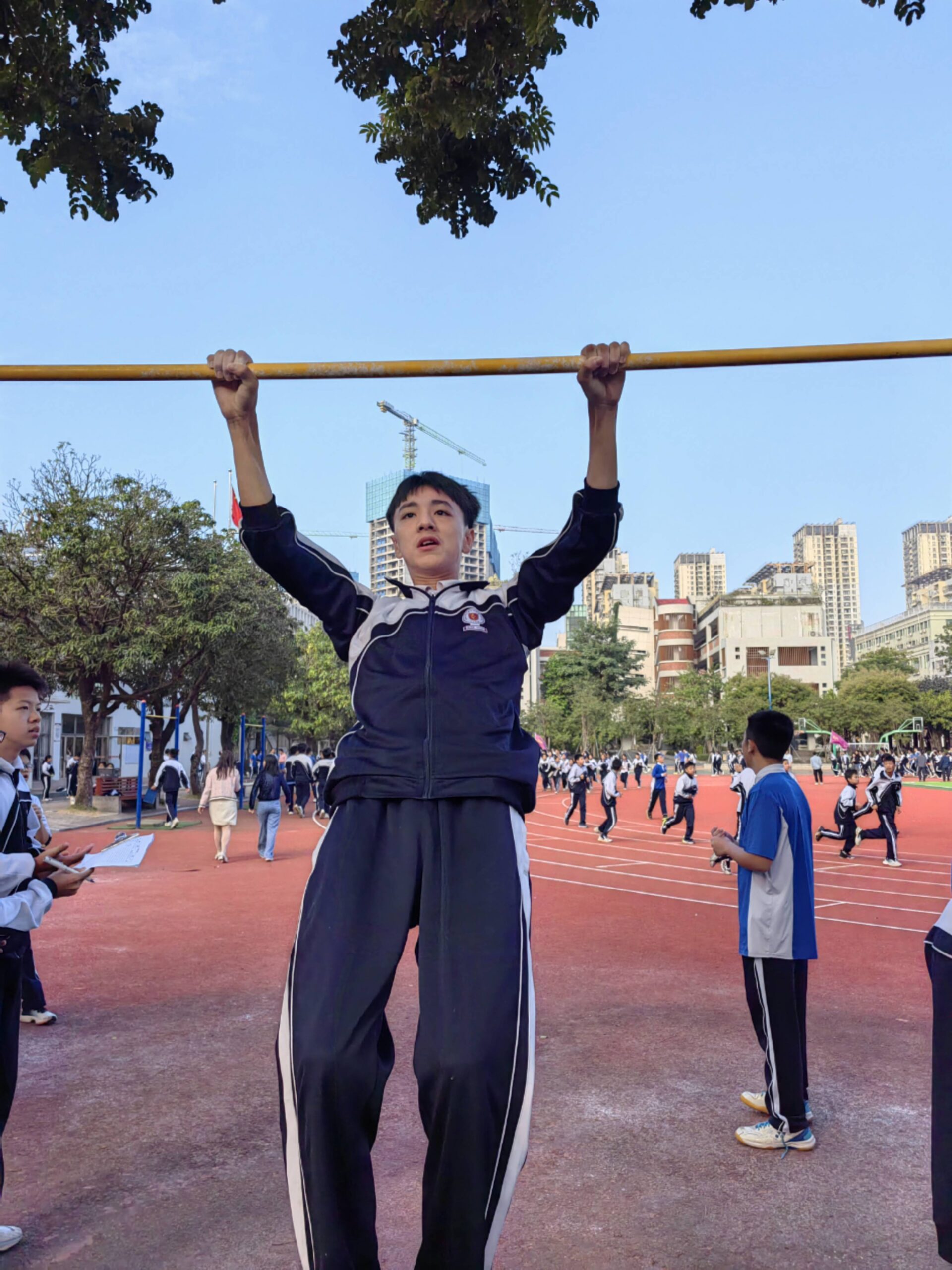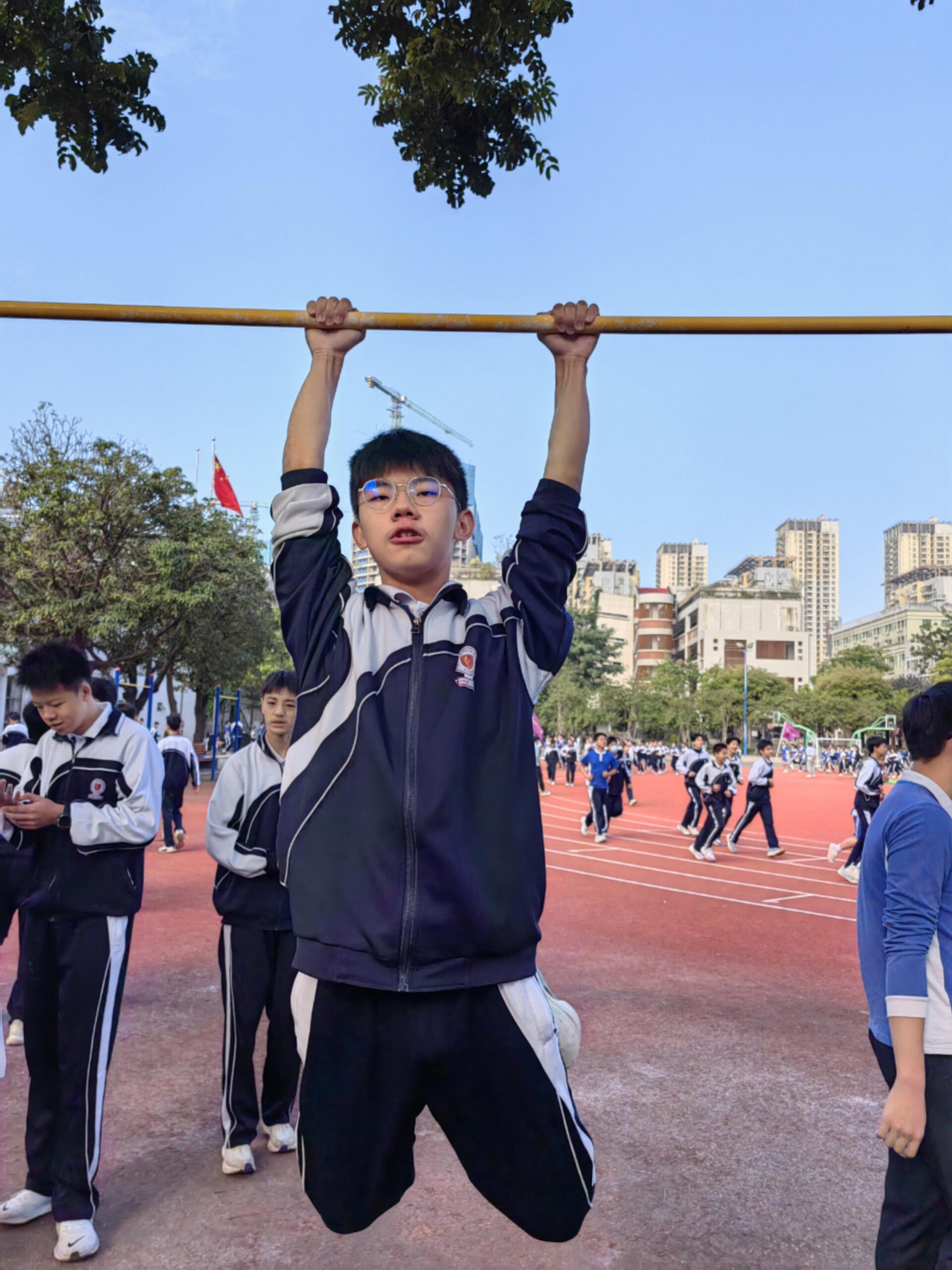 11月14日,班级利用课间体育训练时间,顺利举行了班级第一次引体向上比赛活动,宋智鑫、欧阳成鹏、陈子龙三位同学分别以25个、23个、22个的成绩夺得班级引体向上冠军、亚军、季军!希望全体同学再接再厉,争取更大进步!确保体育中考不丢分!