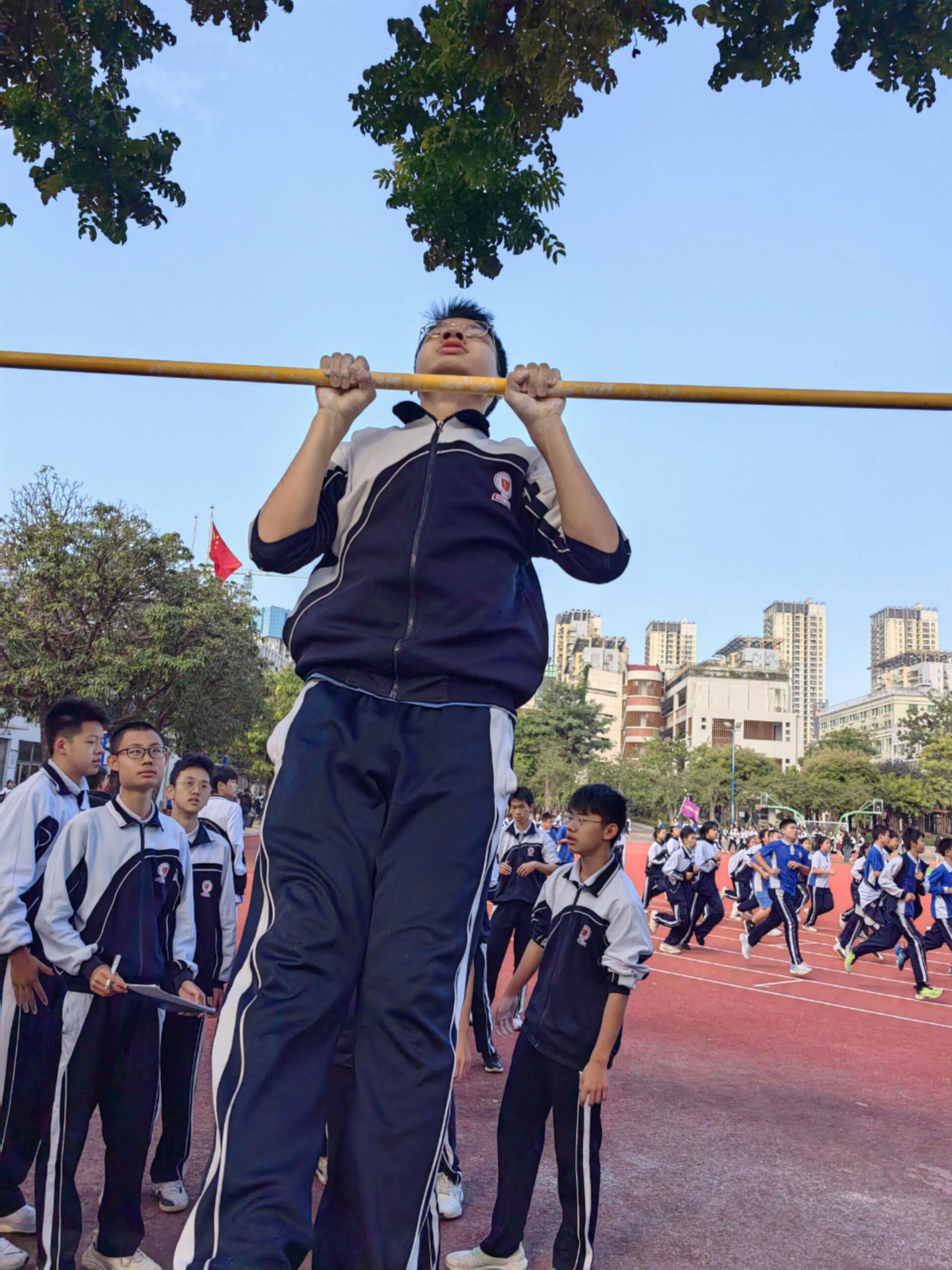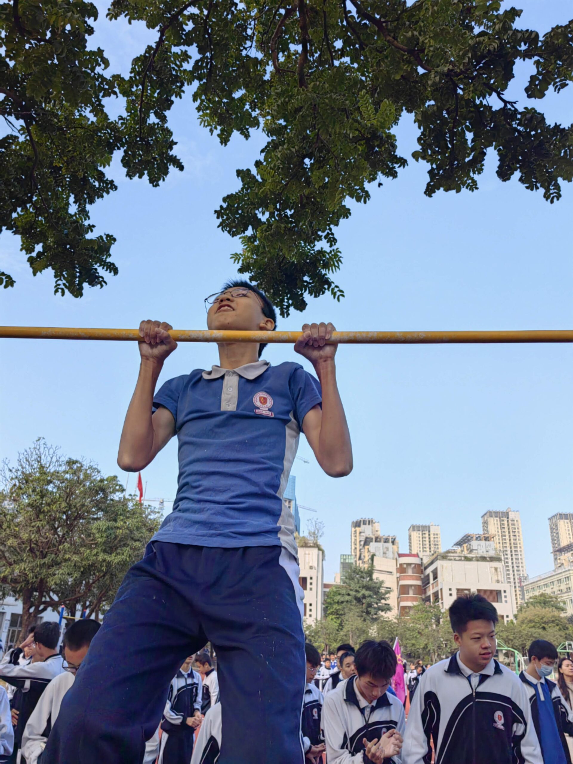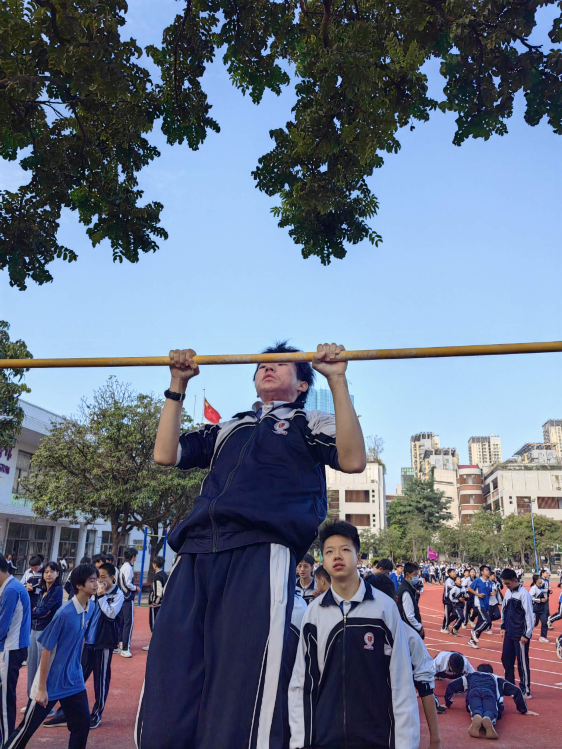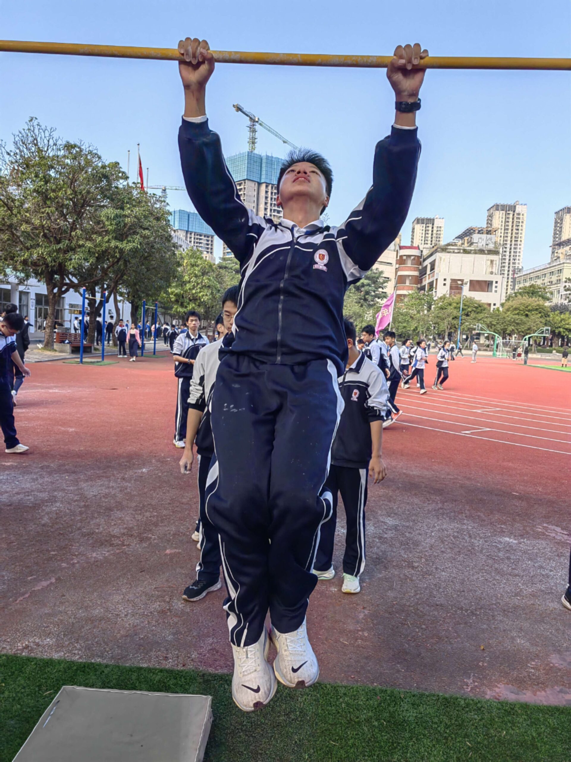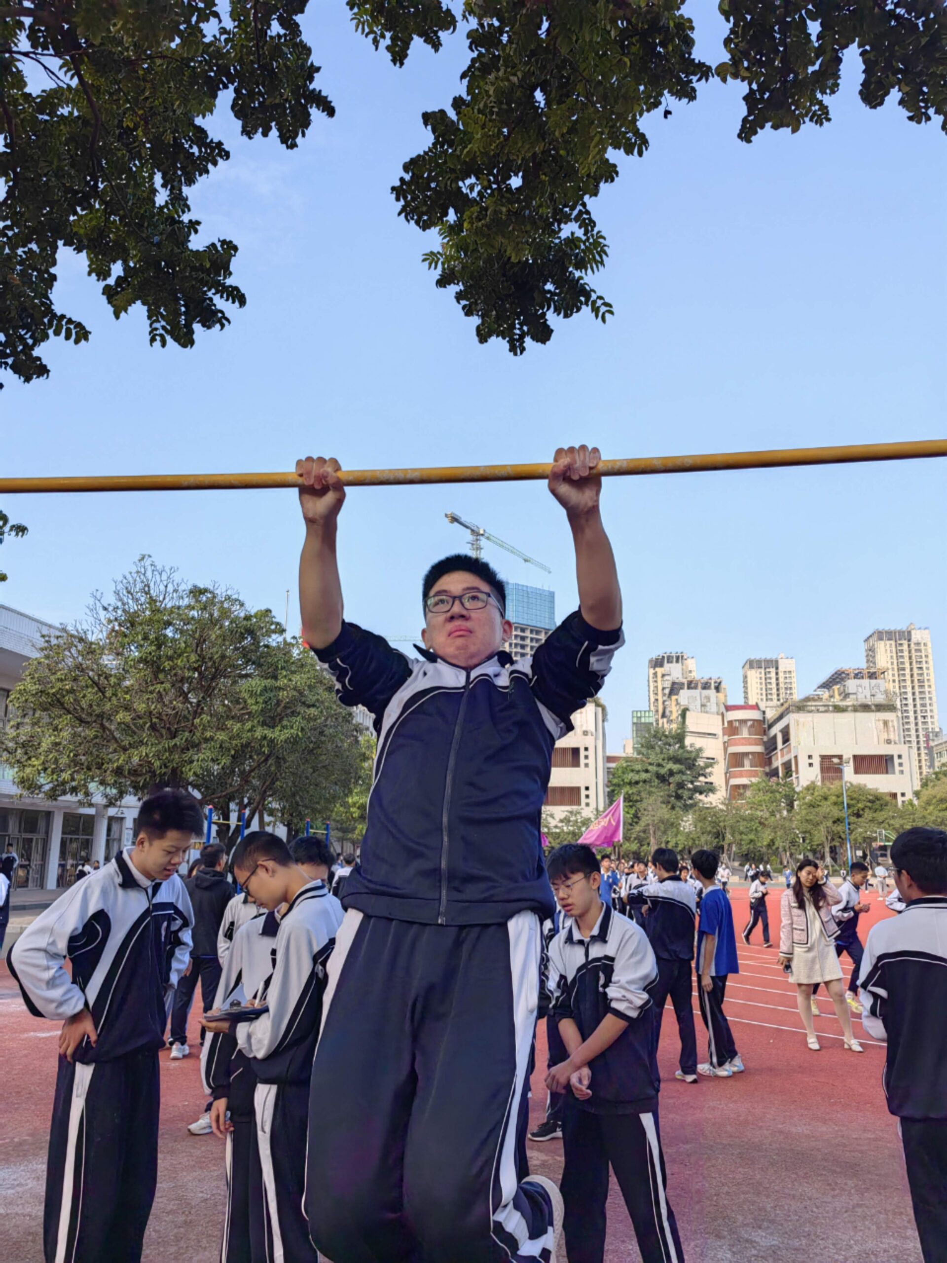 11月14日,班级利用课间体育训练时间,顺利举行了班级第一次引体向上比赛活动,宋智鑫、欧阳成鹏、陈子龙三位同学分别以25个、23个、22个的成绩夺得班级引体向上冠军、亚军、季军!希望全体同学再接再厉,争取更大进步!确保体育中考不丢分!