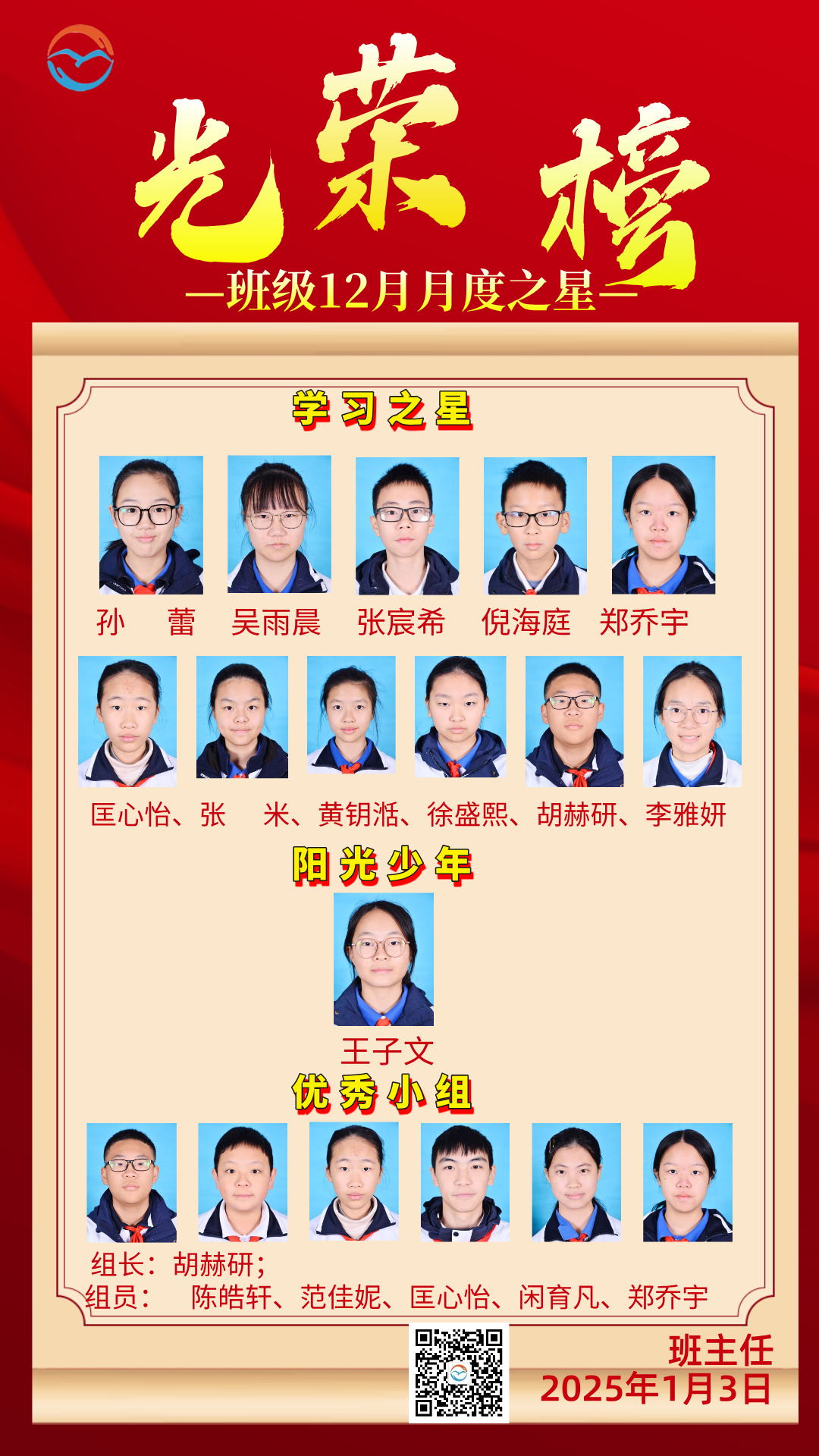 【榜样】班级12月月度之星光荣榜2025年1月9日 15:28:57数字化教学研究 数字化教学研究管理员关注1535文章0粉丝 知新2024级 知新2024级评论8351阅读模式 1 登录收藏 https://www.ky125.com/2025/01/09/15521/ 复制链接 复制链接 我的微信微信号已复制遇见数学-微信公众号善不由外来兮,名不可以虚作。做有情怀的教育。