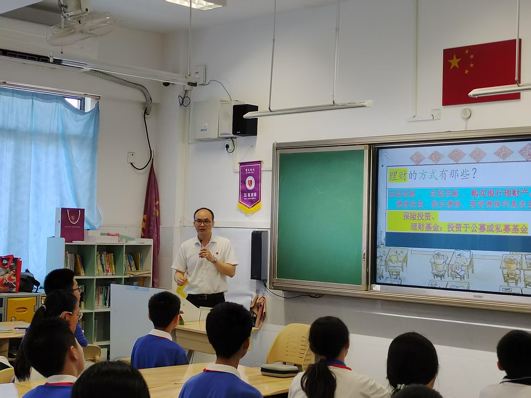 本期有幸邀请到了班级陈晨同学的爸爸陈料科先生到班分享。他分享的主题是《我是小小理财家》,从认识货币讲到认识财富进而过渡到认识理财,并就理财的目的、分类和方式进行了互动式交流分享,通过“知识传递-实践模拟-价值升华”等环节,结合1万元计划、压岁钱安排、零花钱等故事案例,为同学们打造了一堂沉浸式财商启蒙课,有益促进同学们培养正确的金钱观,懂得合适的理财方法。