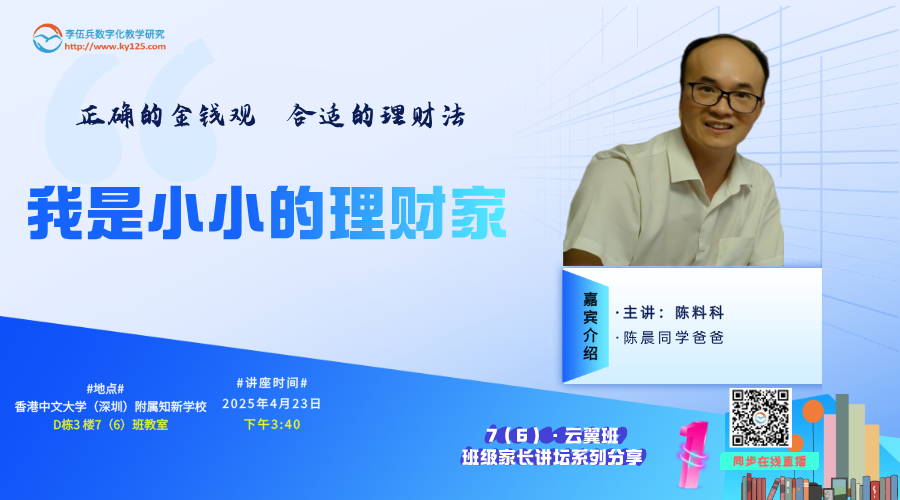 4月23日,第一期讲坛由陈晨的爸爸陈料科先生开启,他带来了题为《我是小小的理财家》的讲座。陈先生通过生动的实例和互动游戏,向孩子们介绍了基本的理财知识和消费观念,激发了学生们对金钱管理和投资理财的兴趣。
