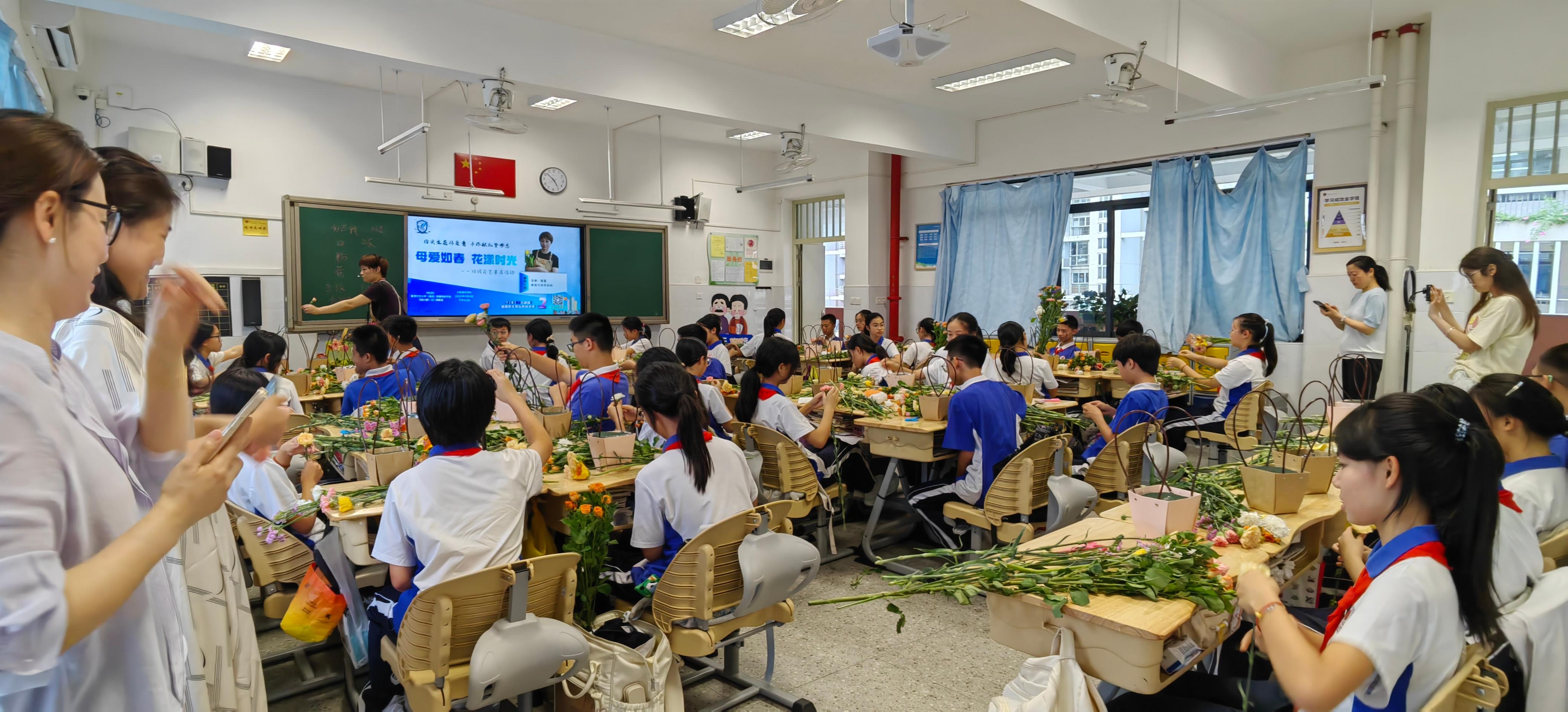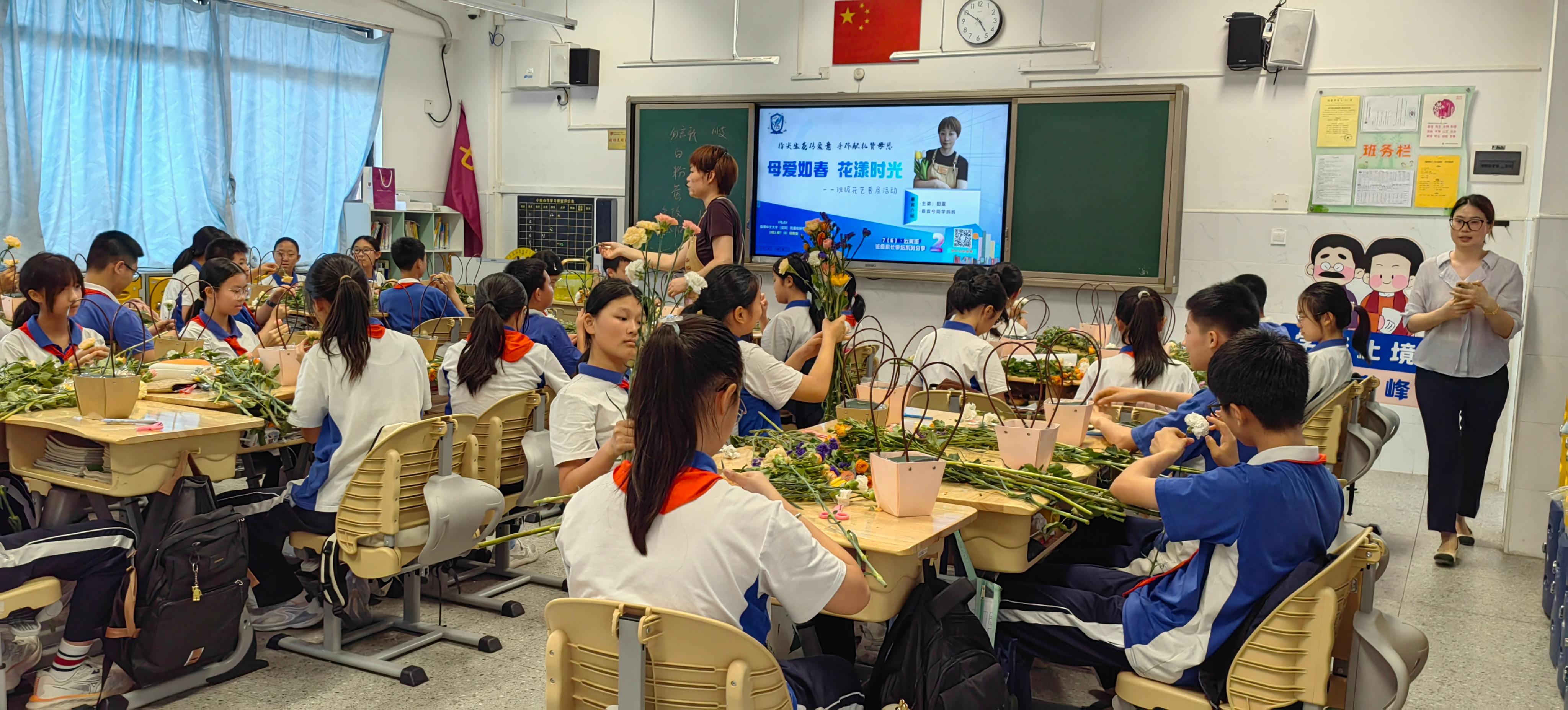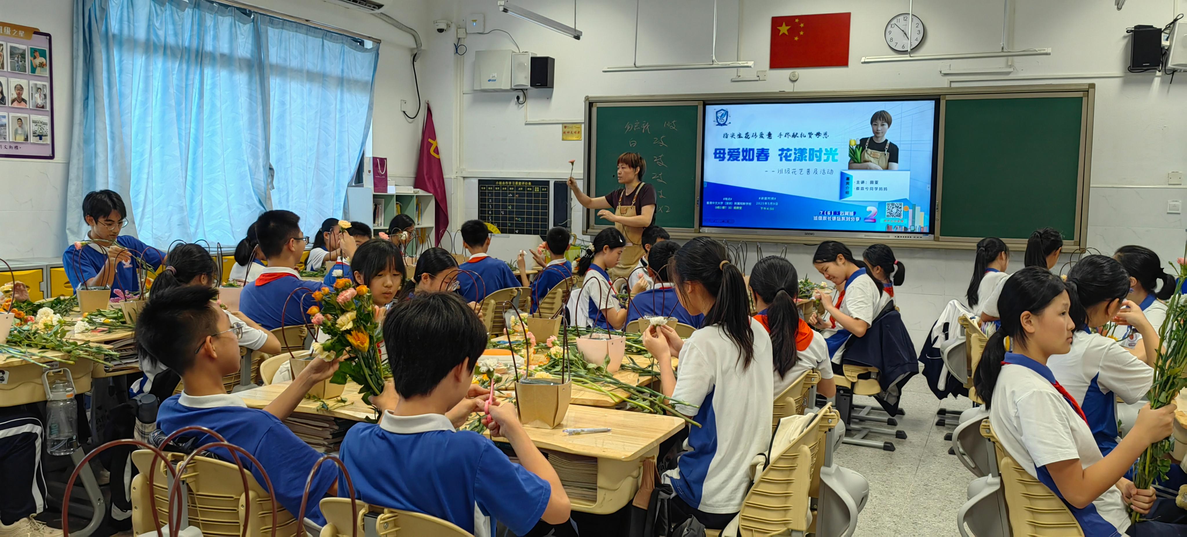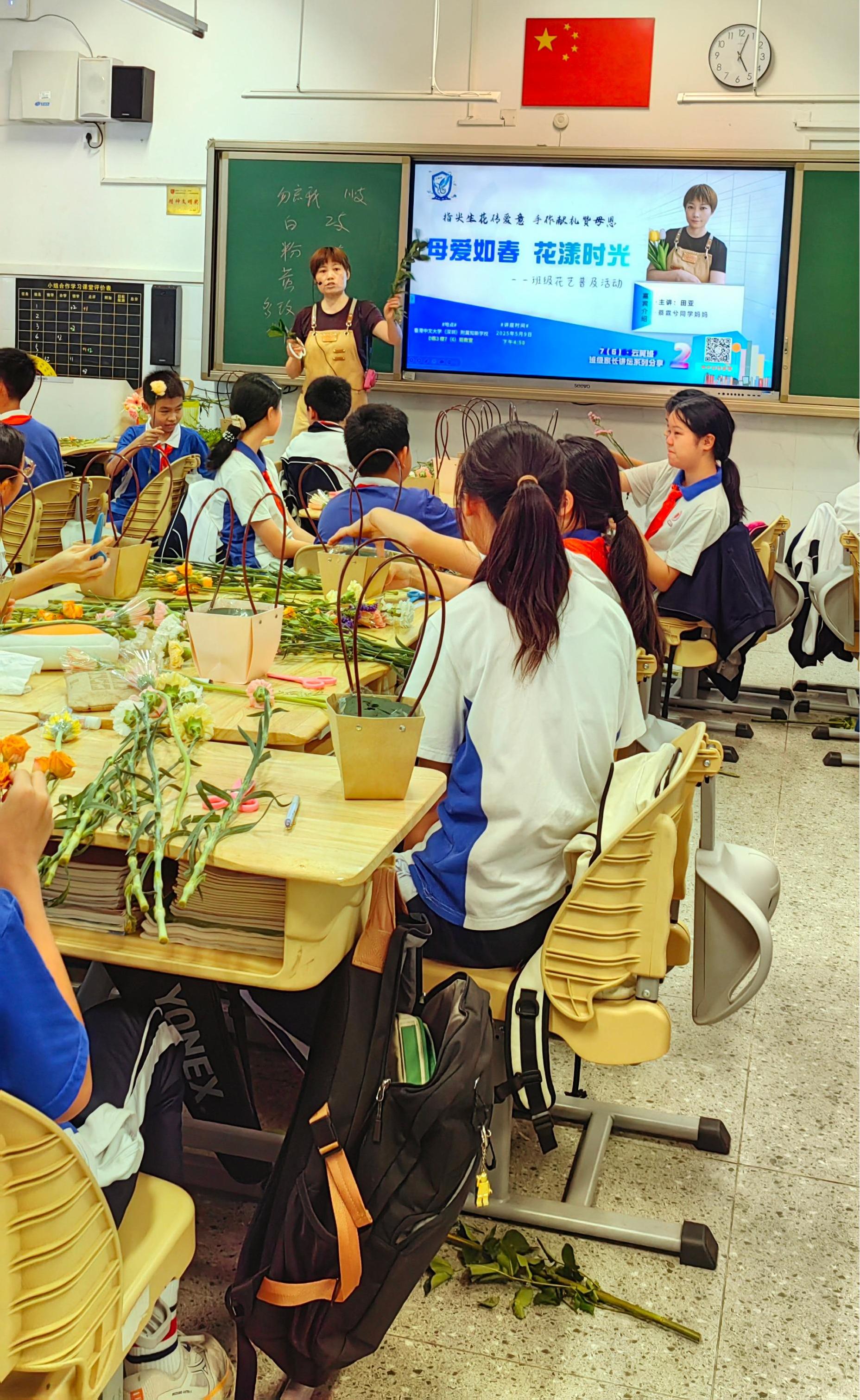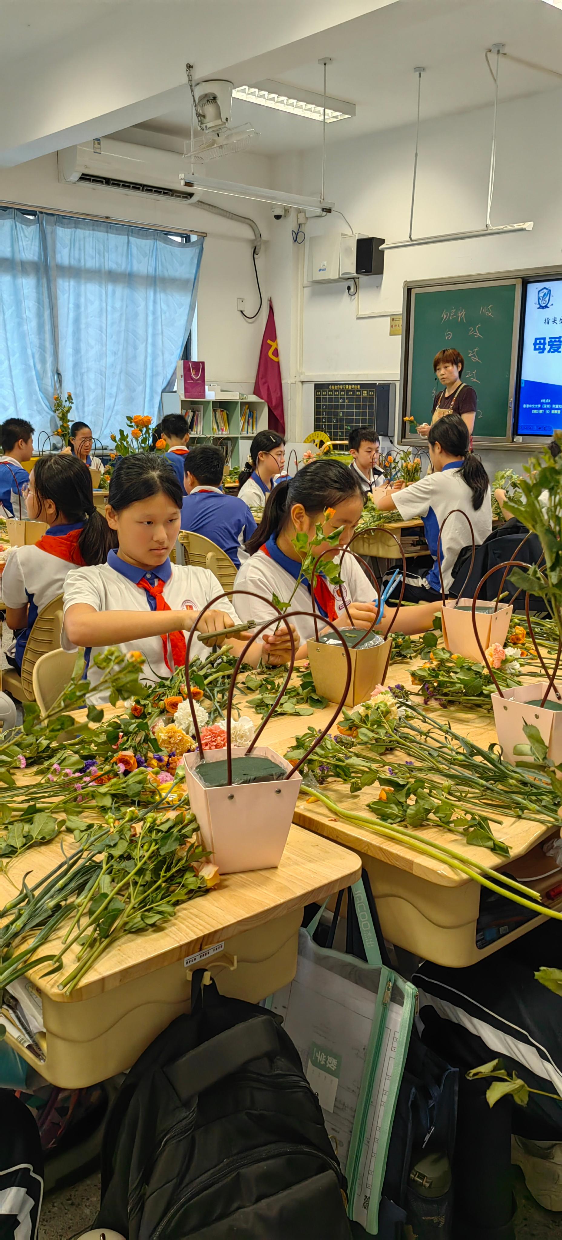 紧接着在5月9日,第二期讲坛由蔡霖兮的妈妈田亚女士主持,主题为《母爱如春 花漾试光》的花艺讲座。田女士不仅向孩子们展示了各种花卉的魅力,还教授了简单的花艺设计技巧。孩子们在她的引导下,亲手制作了美丽的花束,体验了花艺带来的乐趣和美感。