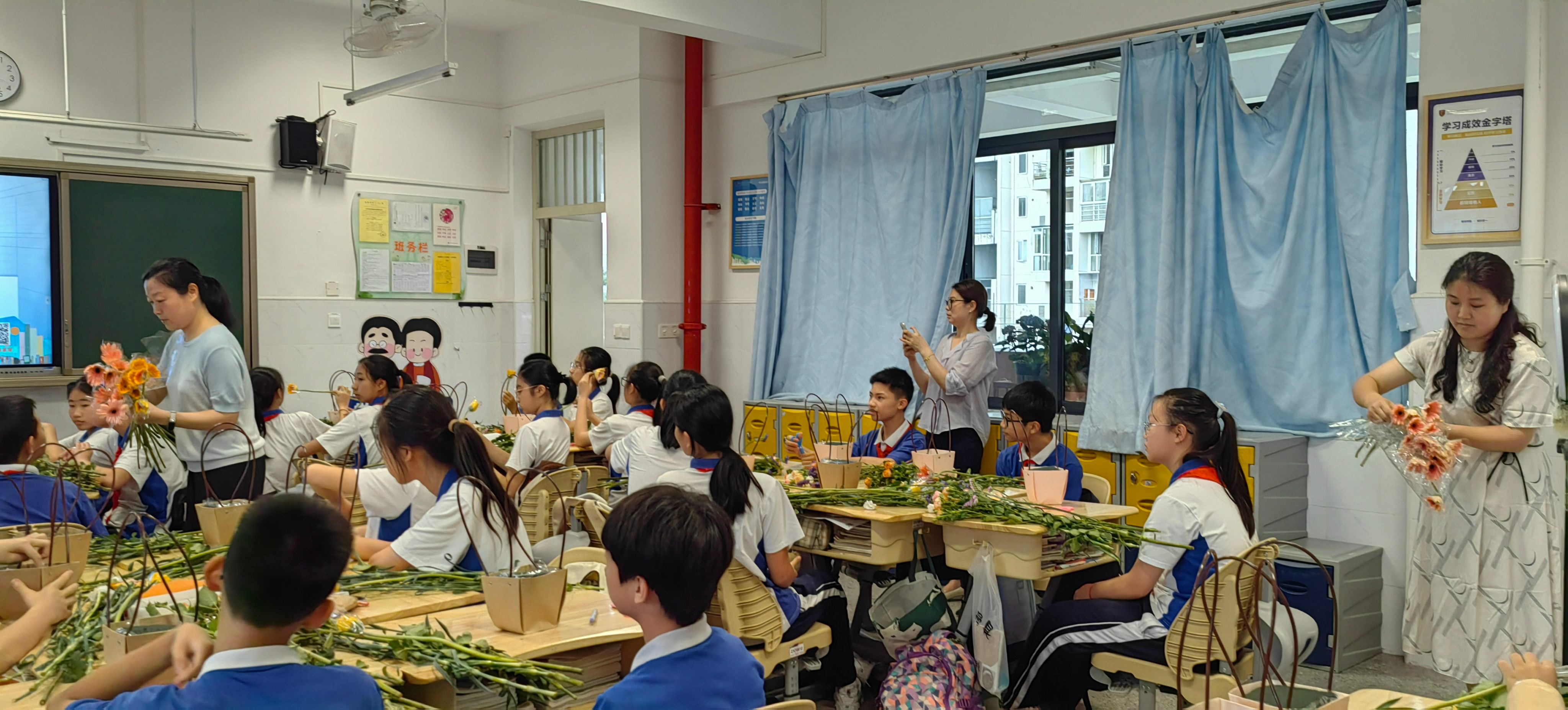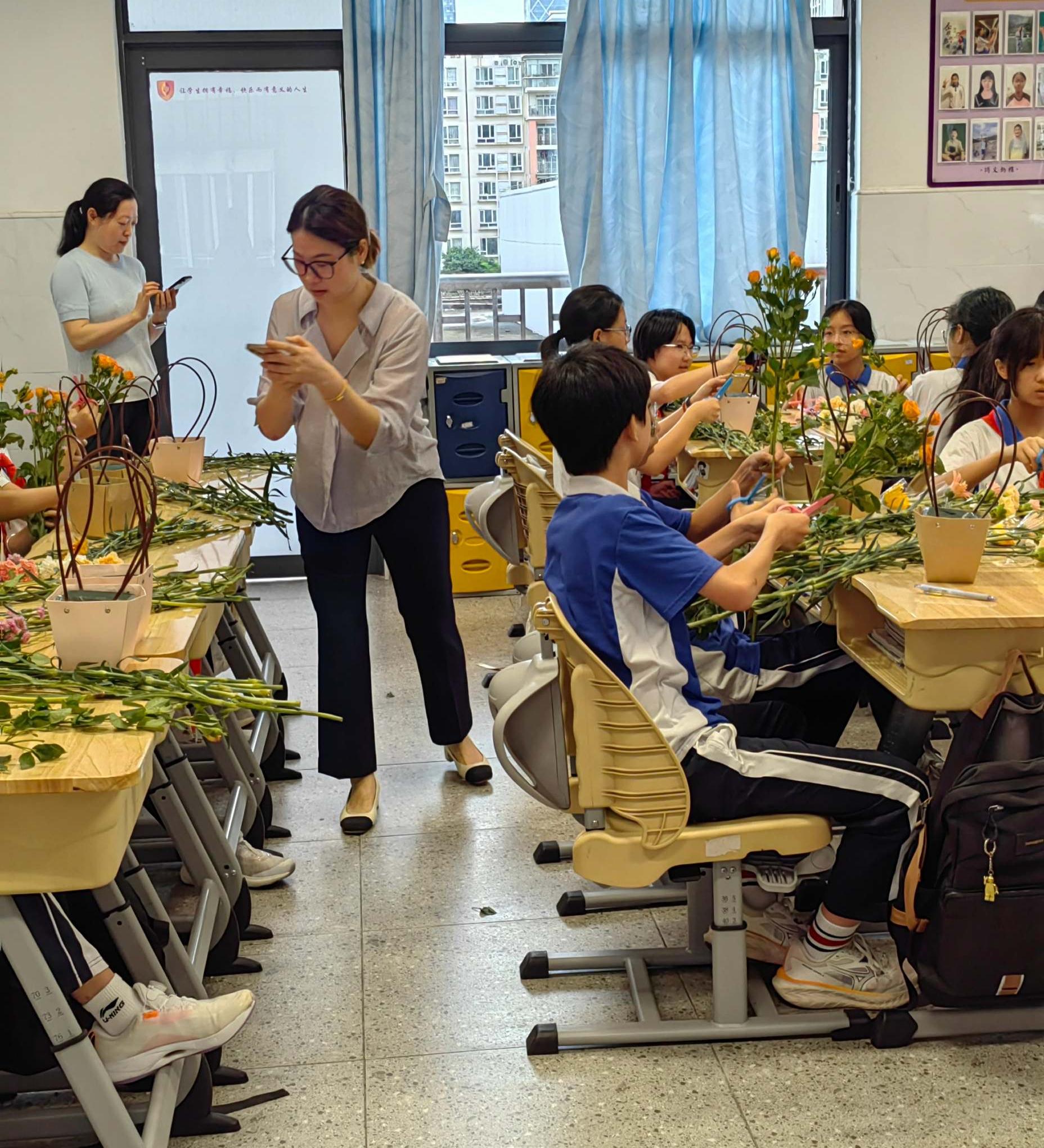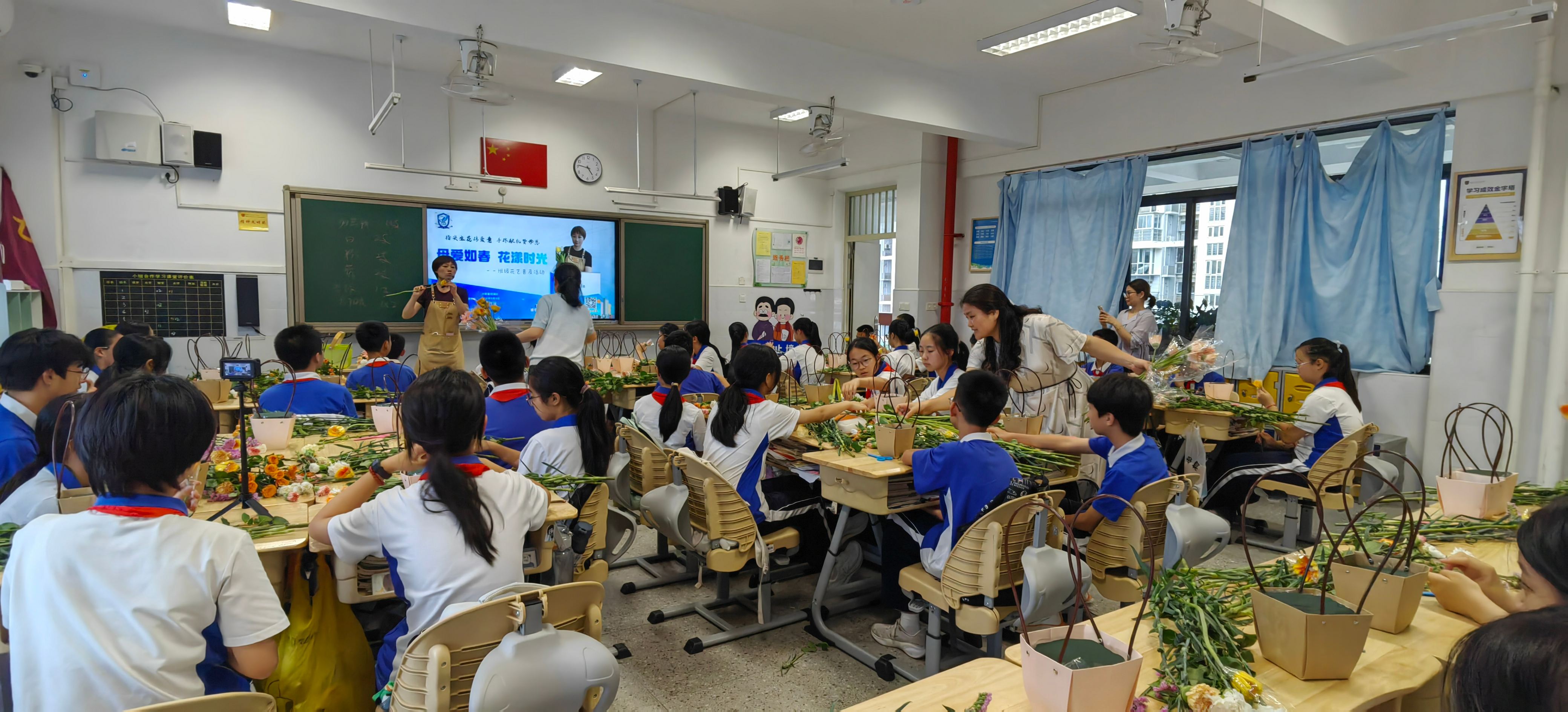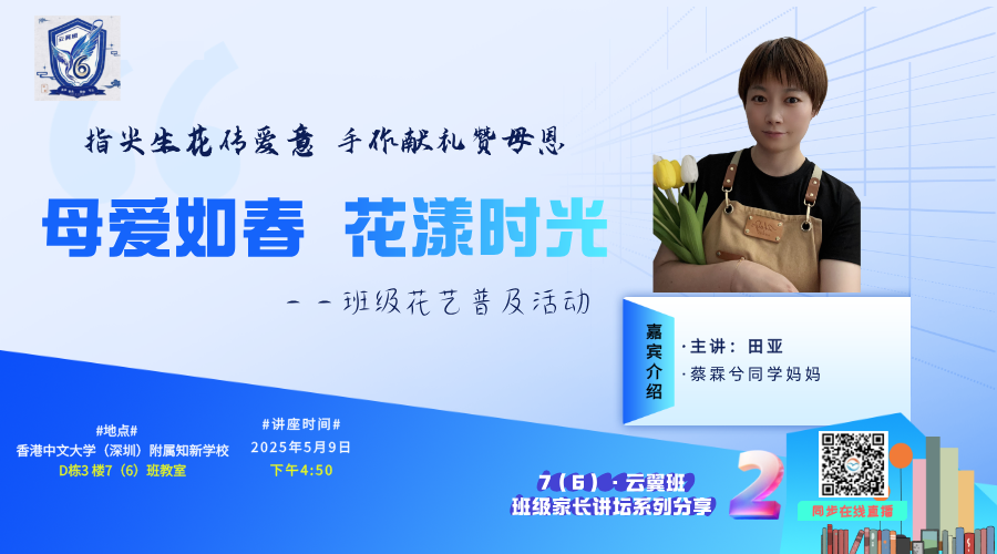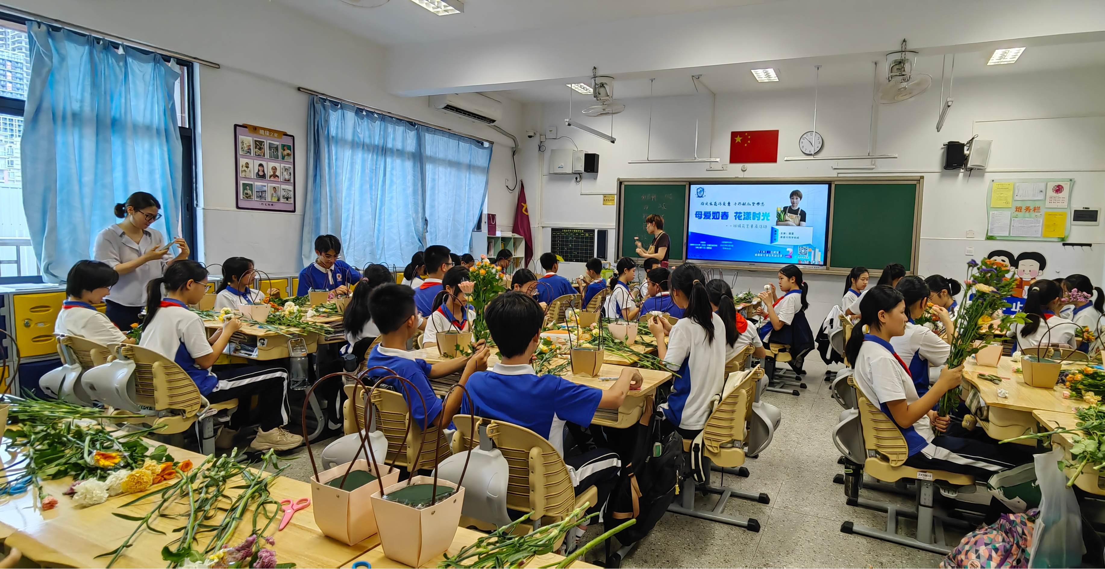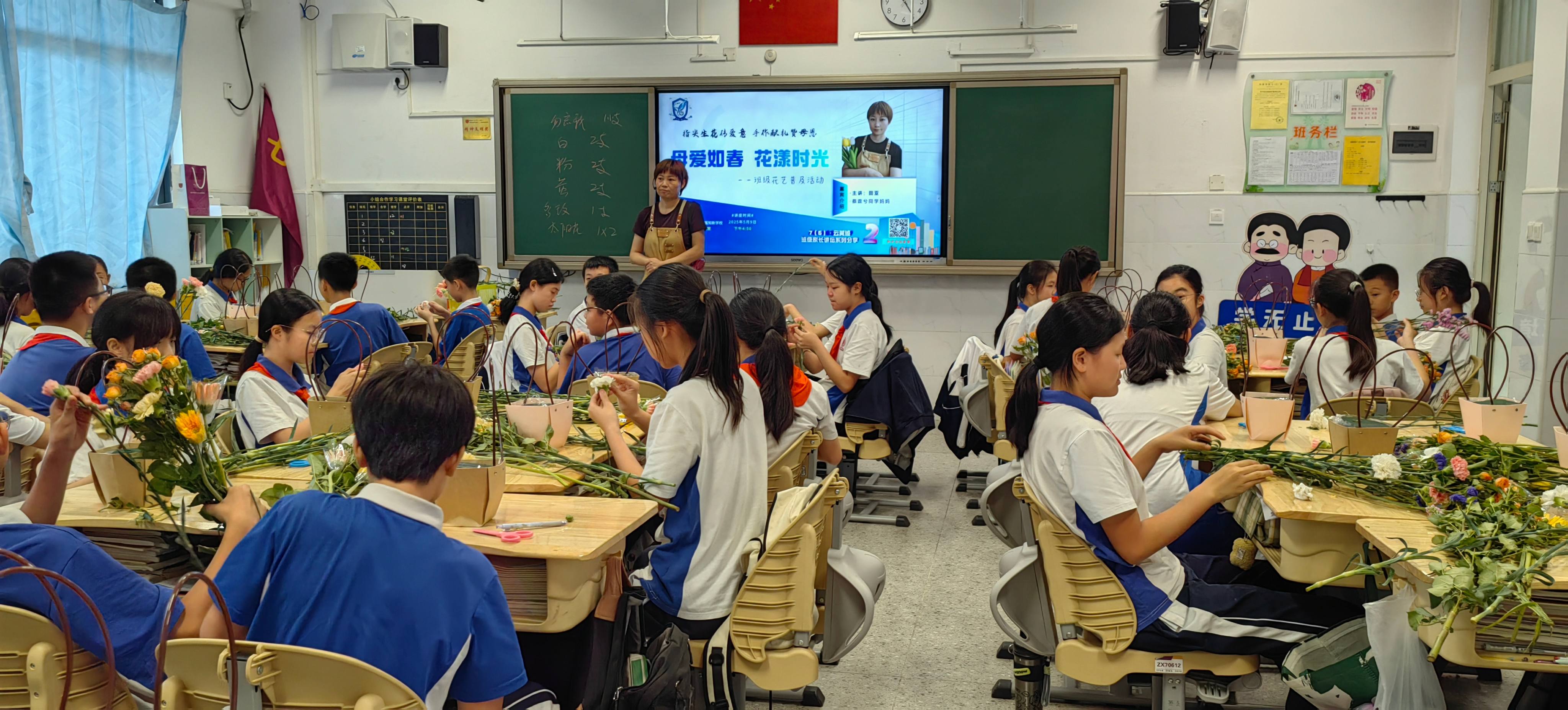 紧接着在5月9日,第二期讲坛由蔡霖兮的妈妈田亚女士主持,主题为《母爱如春 花漾试光》的花艺讲座。田女士不仅向孩子们展示了各种花卉的魅力,还教授了简单的花艺设计技巧。孩子们在她的引导下,亲手制作了美丽的花束,体验了花艺带来的乐趣和美感。