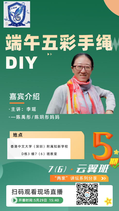 5月29日,第五期讲坛由陈禹彤和陈玥彤的妈妈李瑶女士主持,她带来了《端午五彩手绳DIY》的活动。李女士向孩子们介绍了端午节的传统文化,并指导他们亲手编织五彩手绳。这项活动不仅让孩子们了解了传统节日的意义,还锻炼了他们的动手能力。