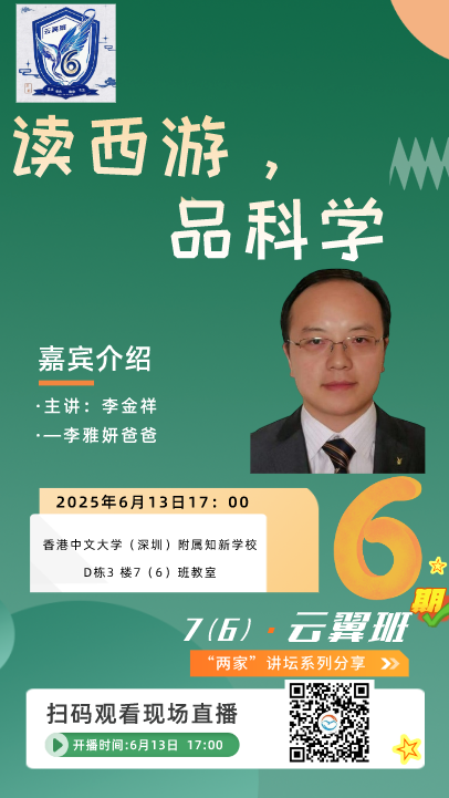 最后,在6月13日,第六期讲坛由李雅妍的爸爸李金祥先生带来《读西游 品科学》的讲座。李先生巧妙地将古典名著《西游记》与科学知识相结合,引导孩子们在阅读经典的同时,发现科学的奥秘。他的讲座既有趣又富有教育意义,深受孩子们的喜爱。